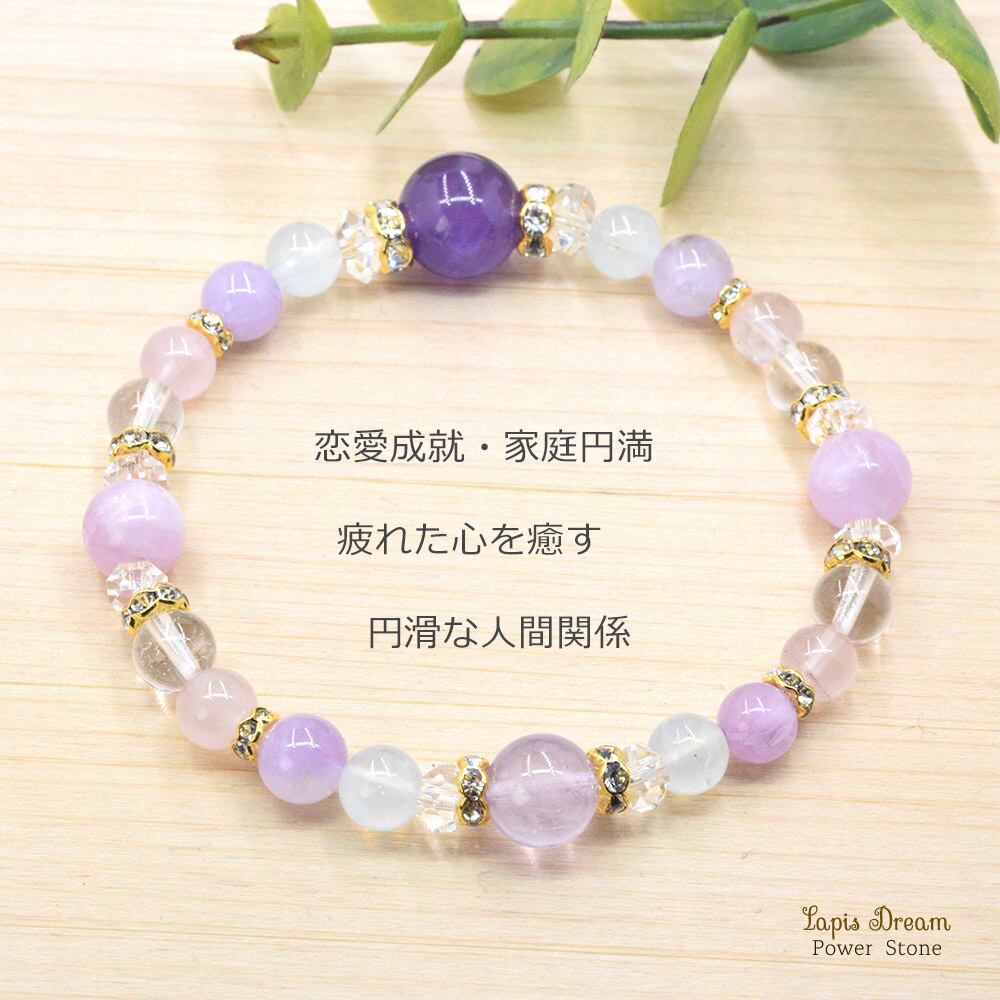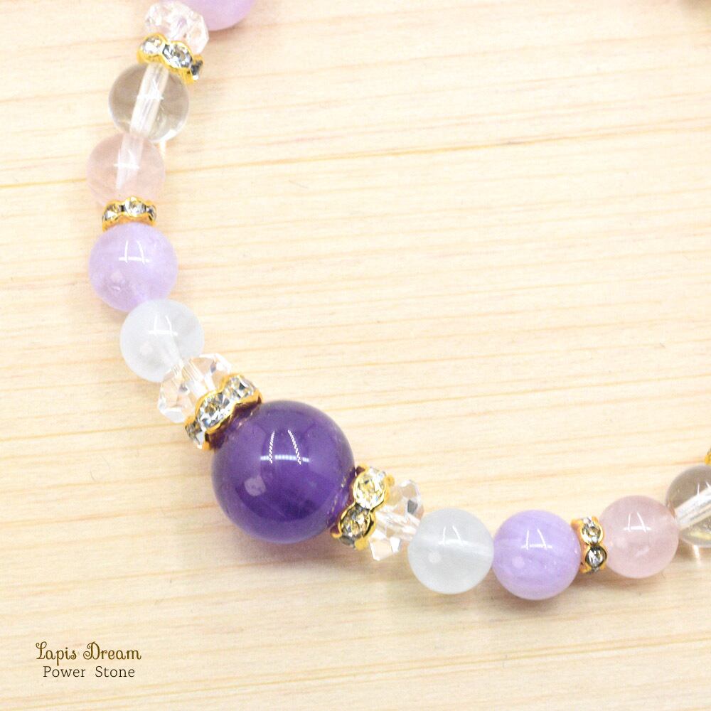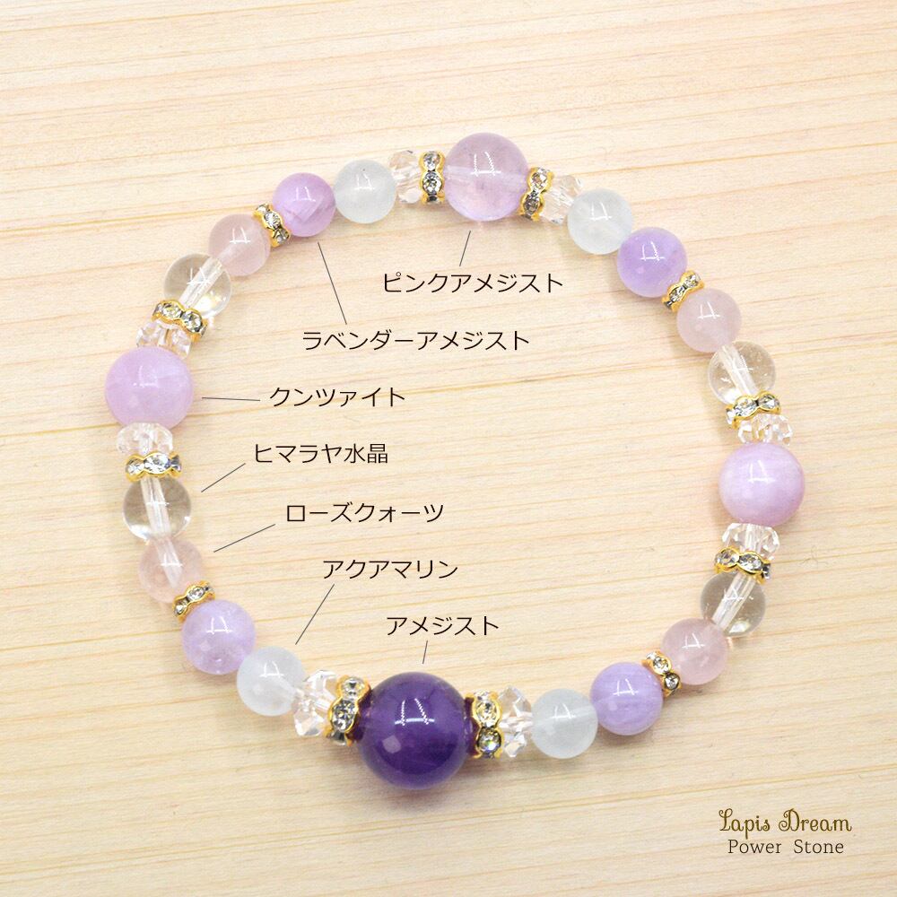 恋愛と家庭円満・心を癒やすお守り | アメジスト、クンツァイトのパワーストーン ブレスレット