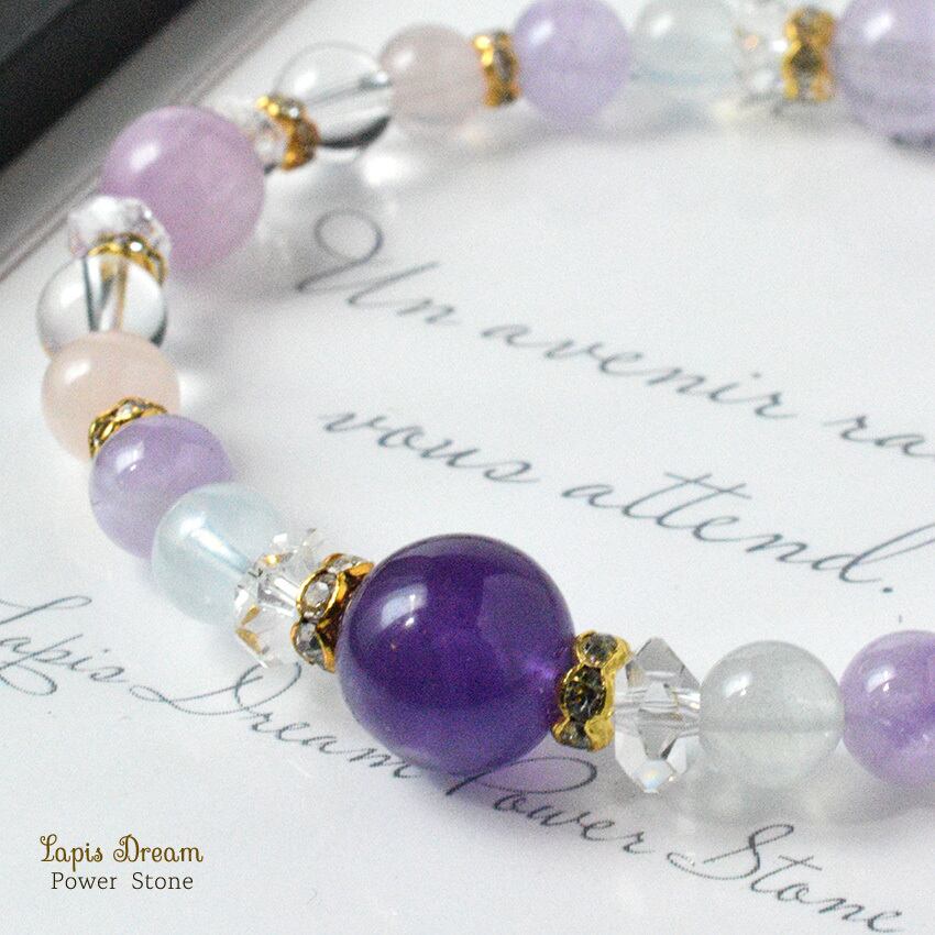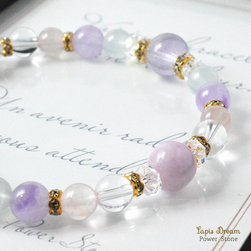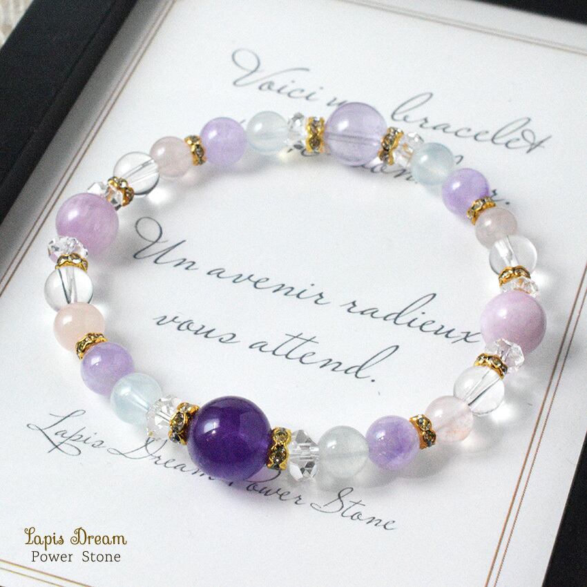 張りつめた心が、静かにほどけていくお守り | アメジスト、クンツァイトのパワーストーン ブレスレット
