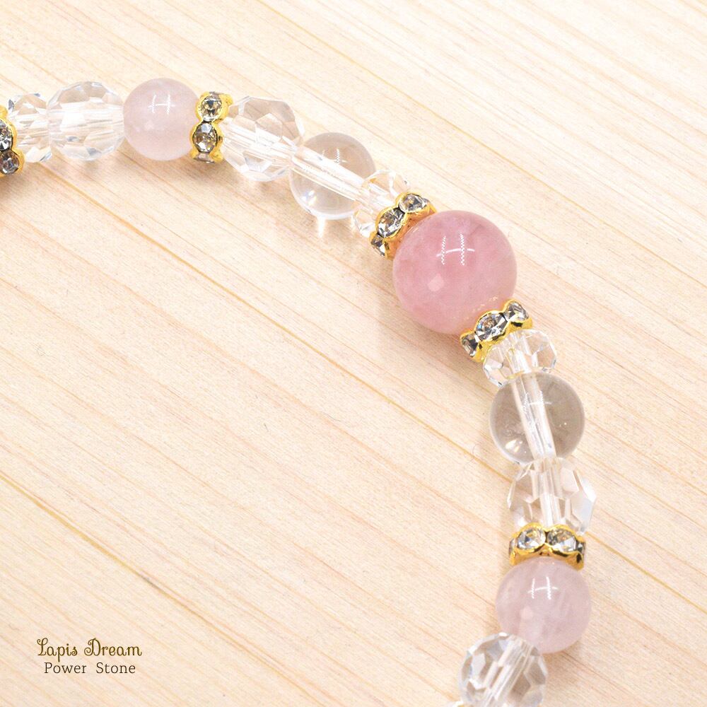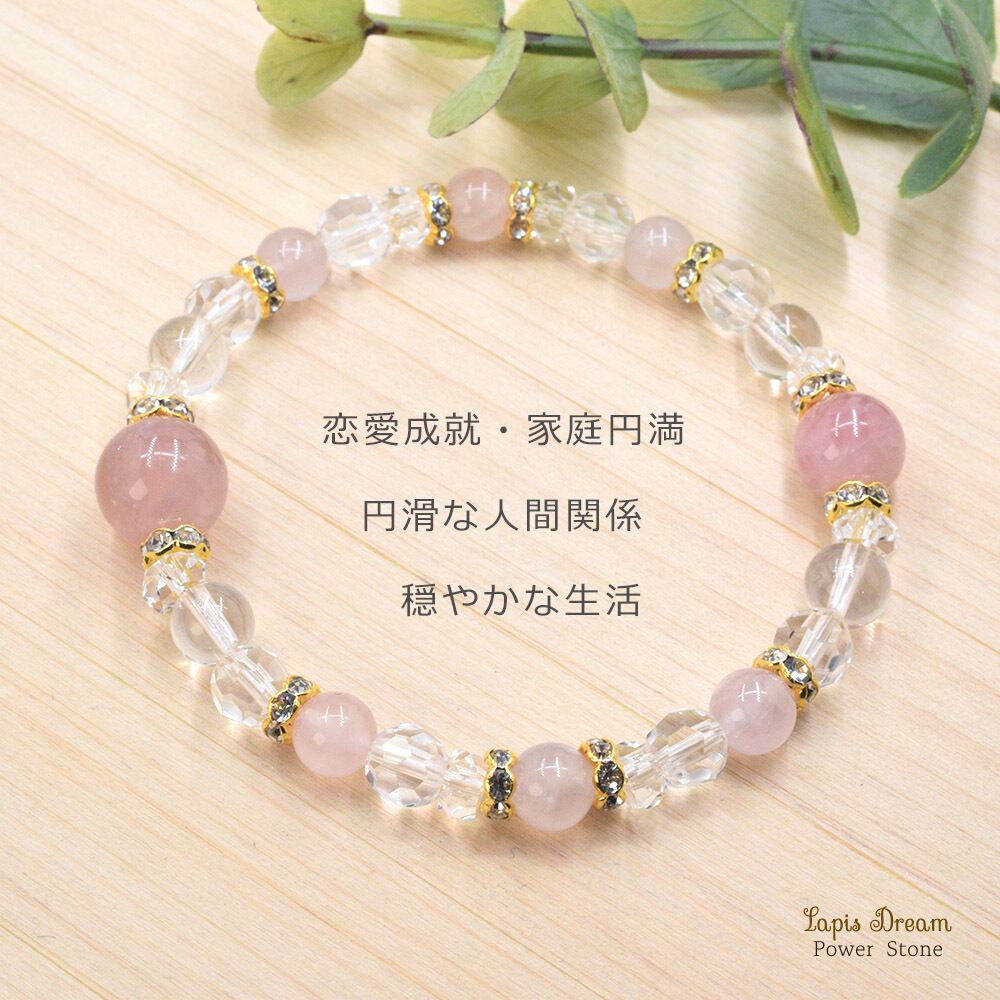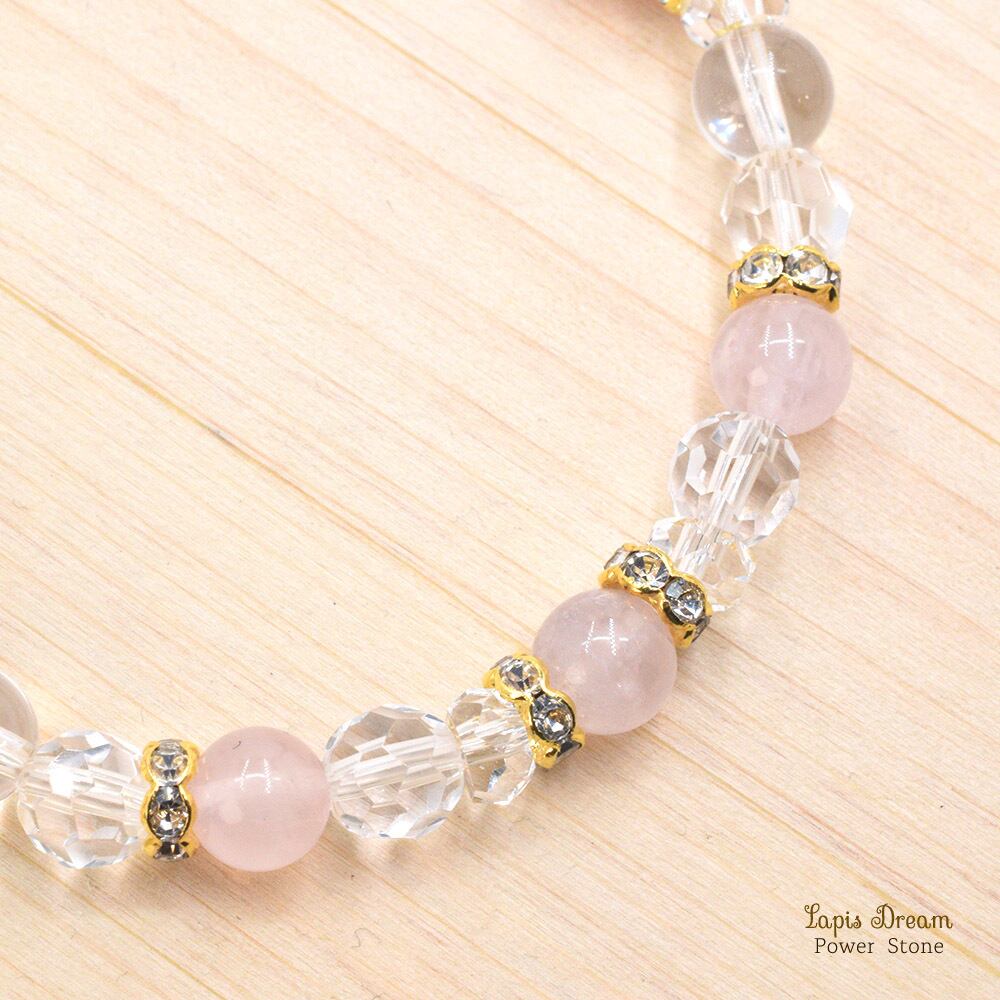 恋愛成就・家庭円満のお守り | ローズクォーツと本水晶のパワーストーン ブレスレット