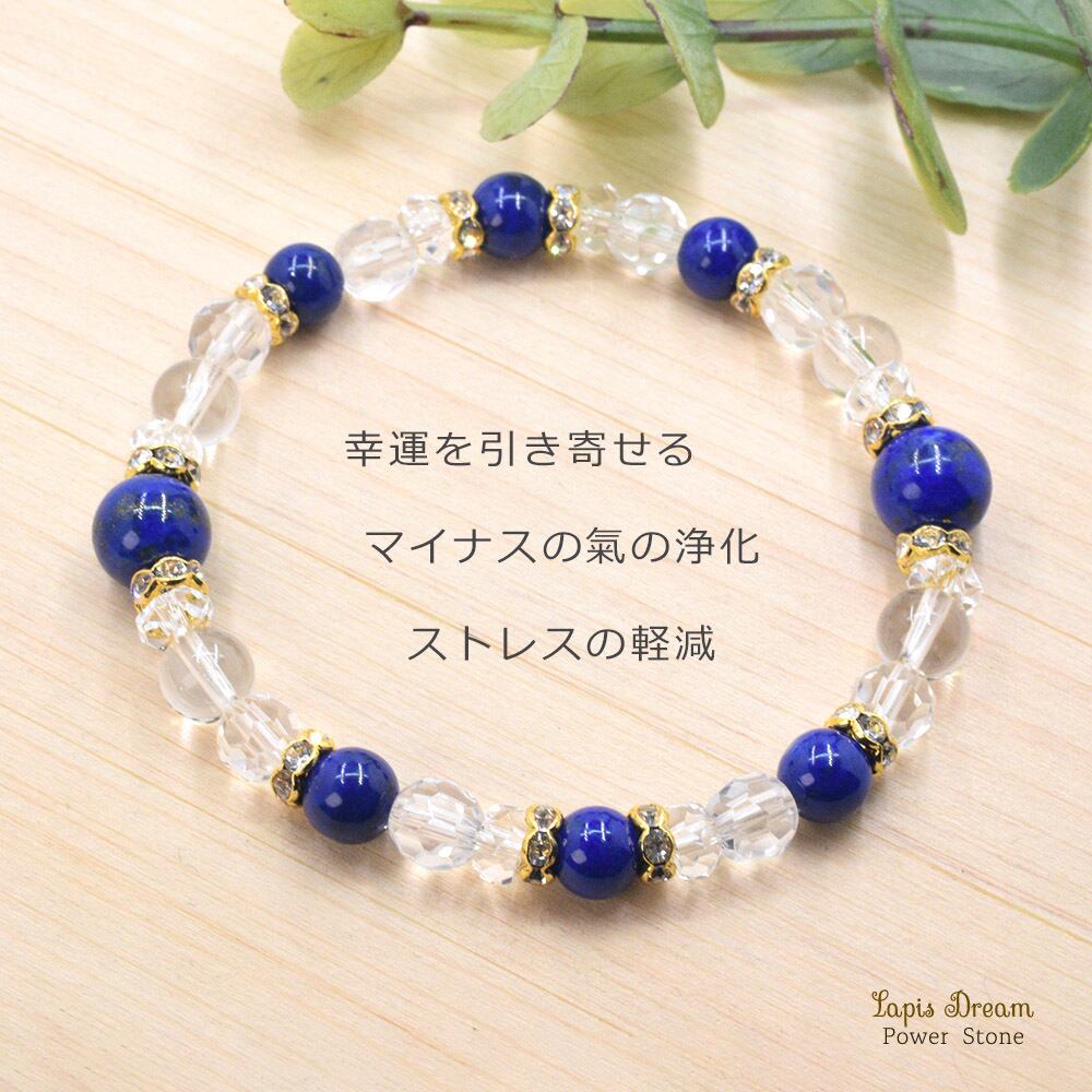 幸運を呼び込むお守り | ラピスラズリと本水晶のパワーストーン ブレスレット