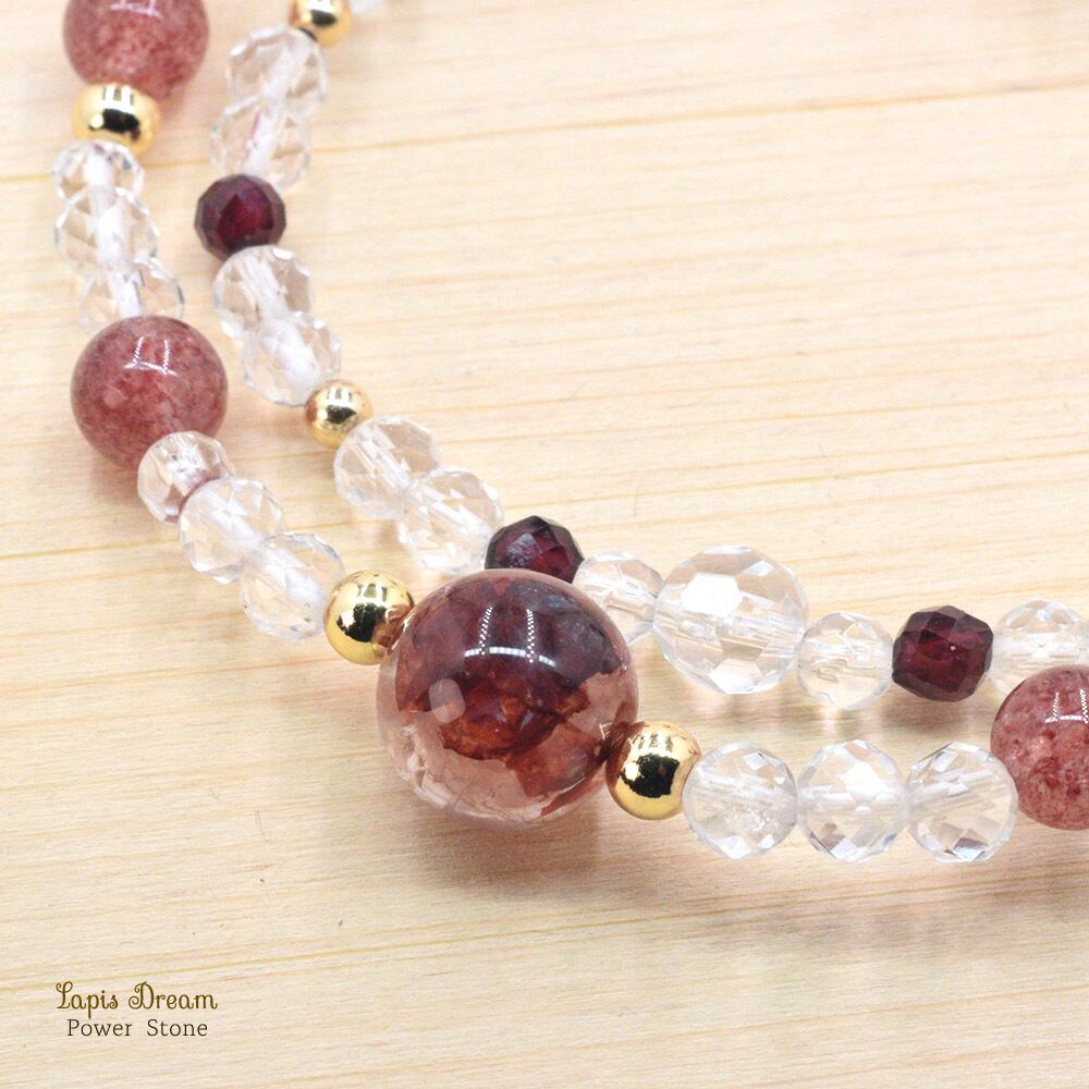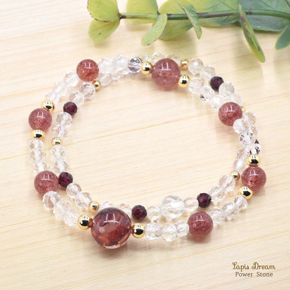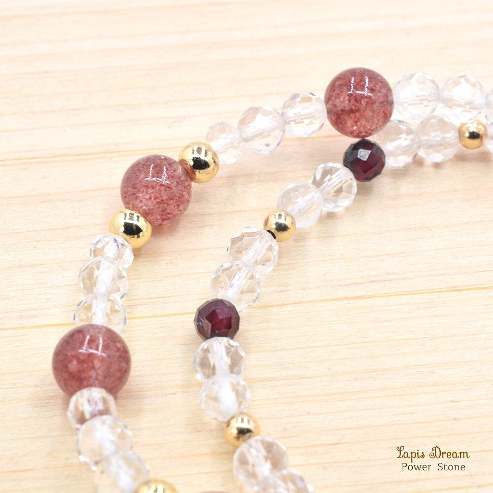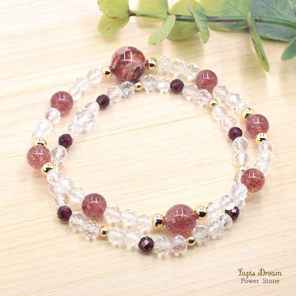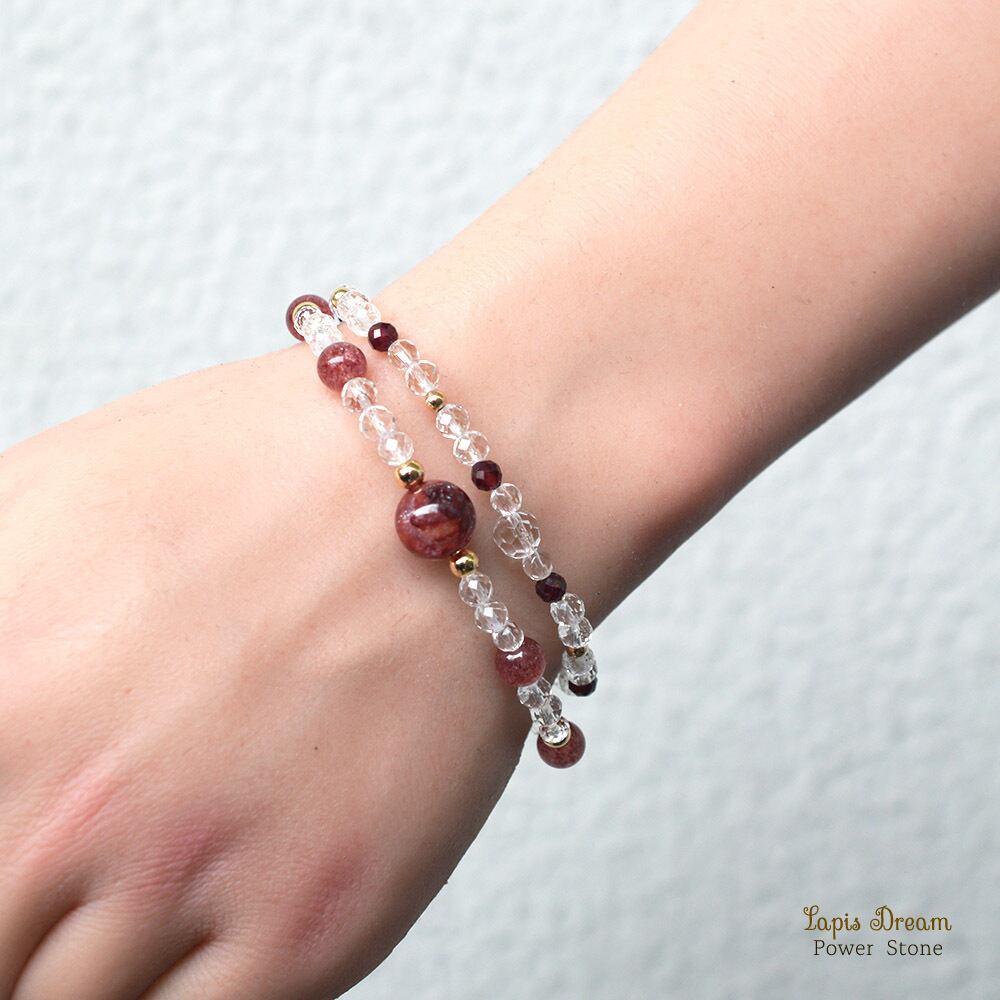 そして、「願いを叶える」「ネガティブな感情の払拭」と言われるガーネットを配した二連ブレスレットです。