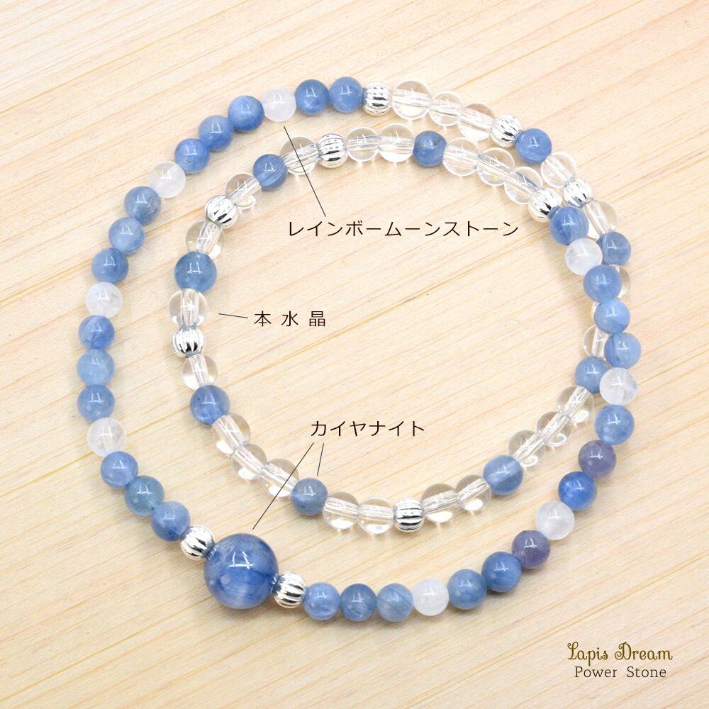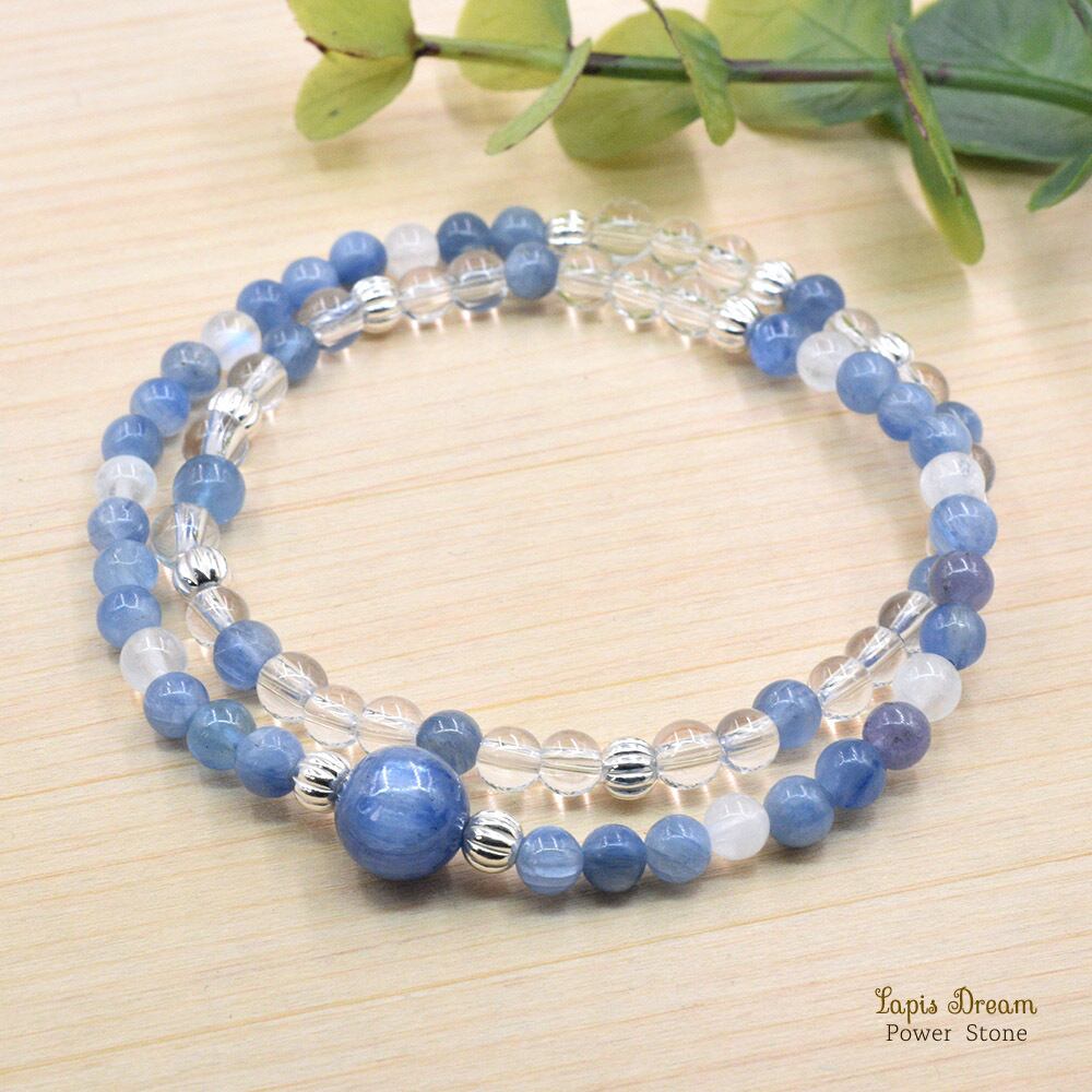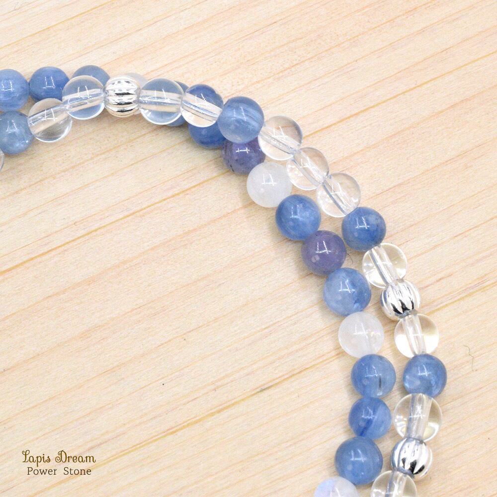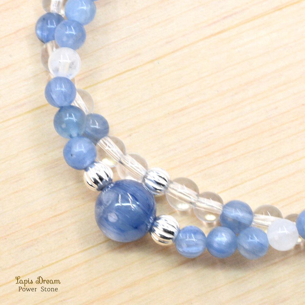 うっとりするカイヤナイトの煌めきと、透明感抜群の本水晶のコントラスト、そしてSilver925ビーズの組み合わせが高級感を高めます。