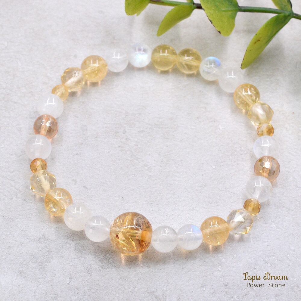 内包物(シラー)が美しいシトリンや、キラキラと煌めくレインボームーンストーンを身に着けてお出掛けすれば、自然とエネルギーが湧いて来ますよ♪