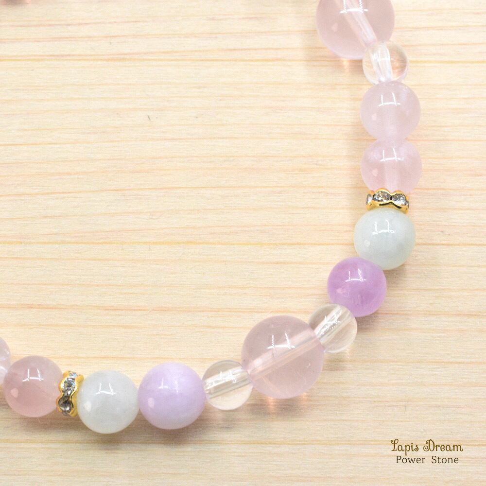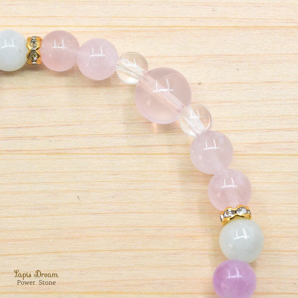 そんなローズクォーツに「人に優しく接する」と言われるクンツァイトを組み合わせて、優しさに溢れたパワーストーン ブレスレットを制作しました。