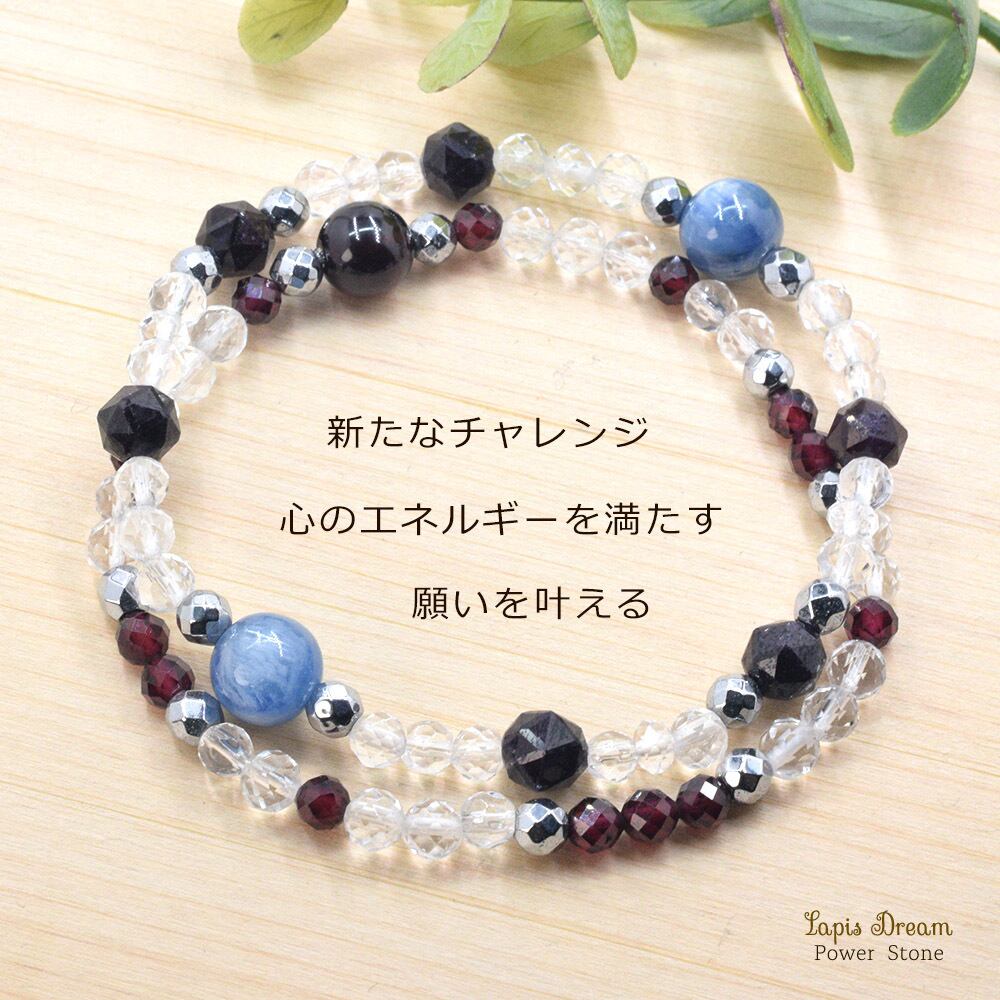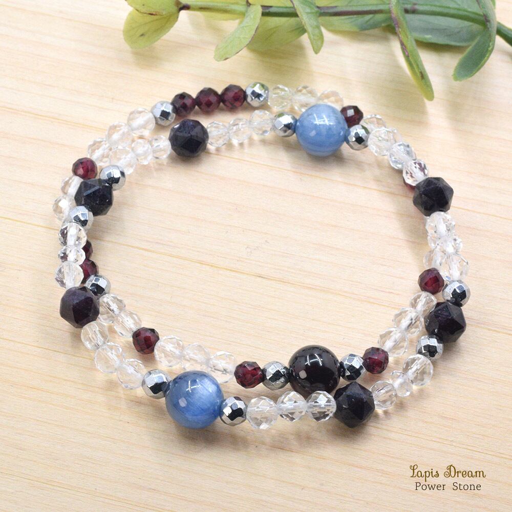 新たな気持ちで挑戦するお守り | カイヤナイトとガーネットのパワーストーン ブレスレット