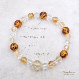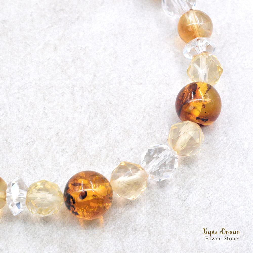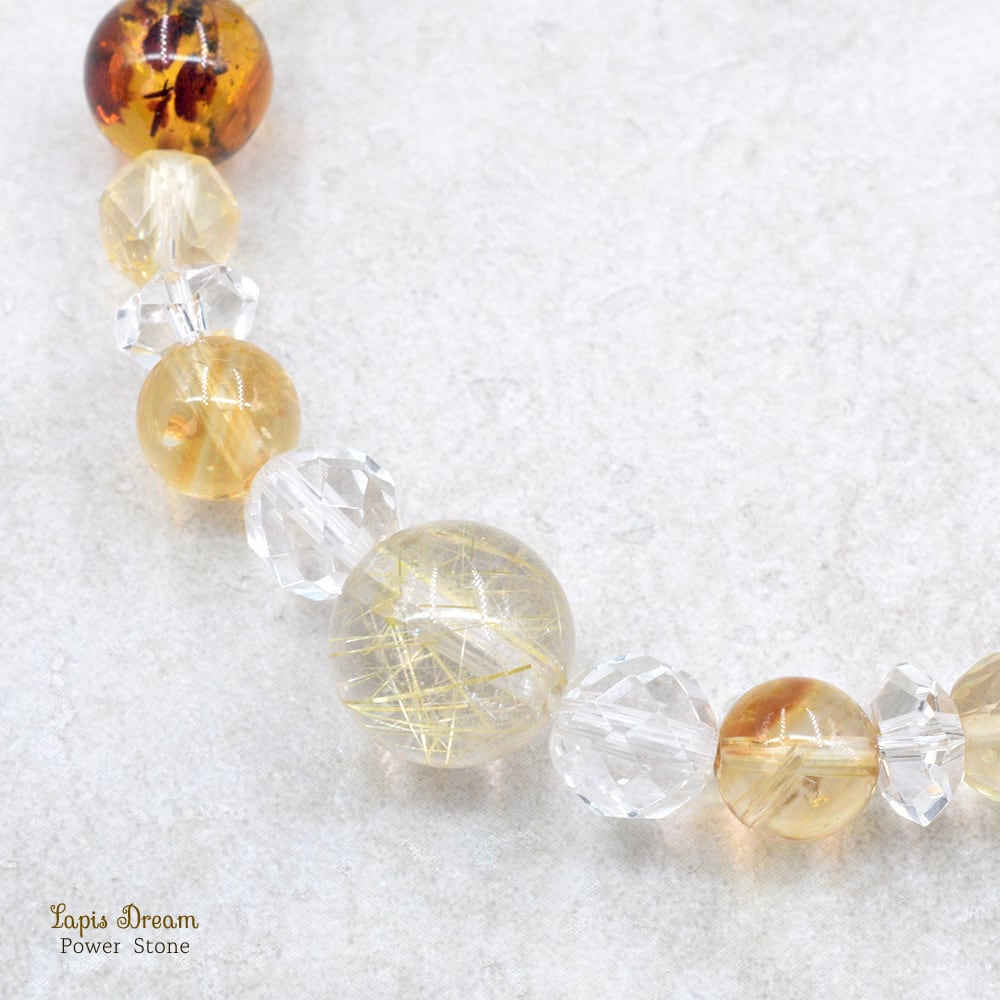 お金の巡りを優しく整えるお守り | ルチルクォーツ、アンバー(琥珀)のパワーストーン ブレスレット