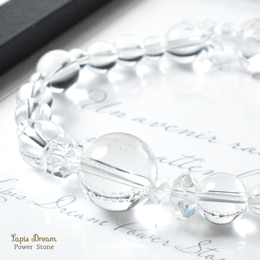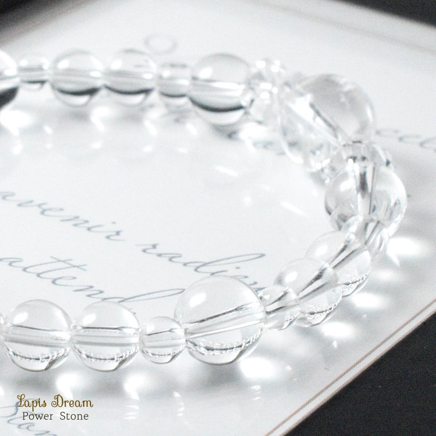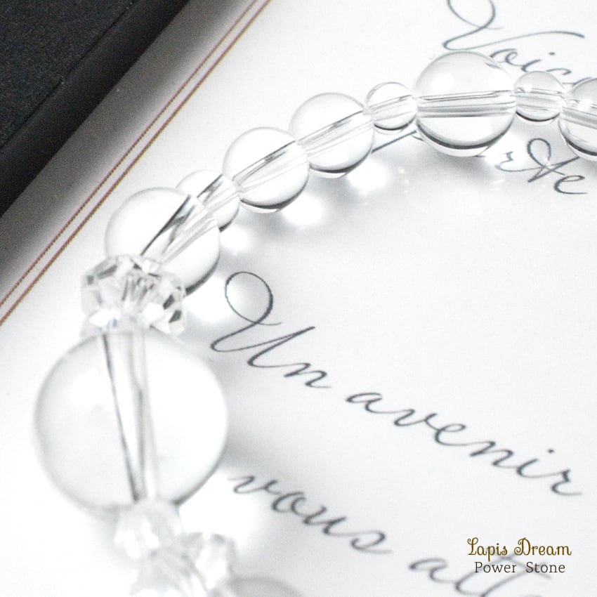 当店では特に「水晶の透明感」にこだわっており、ひと粒ひと粒厳選したブラジル産の高品質な本水晶だけを使用しています。