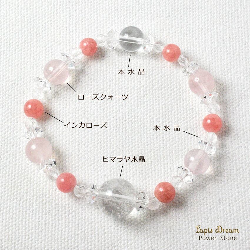 頑張りすぎた心をそっと癒すお守り | ヒマラヤ水晶、インカローズのパワーストーン ブレスレット