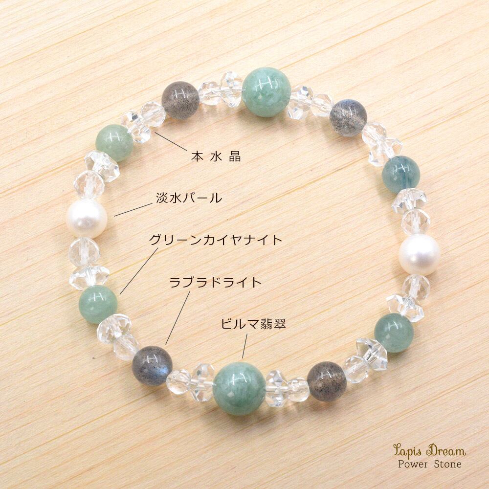 人間関係のストレスを癒すお守り | ビルマ翡翠、ラブラドライトのパワーストーン ブレスレット
