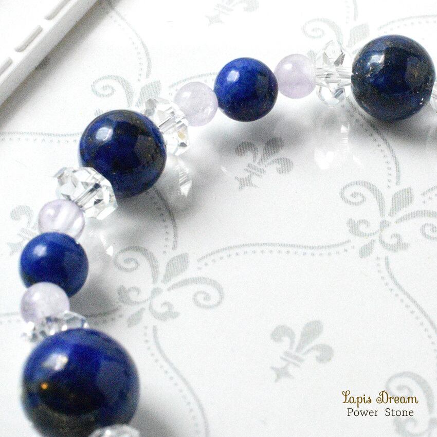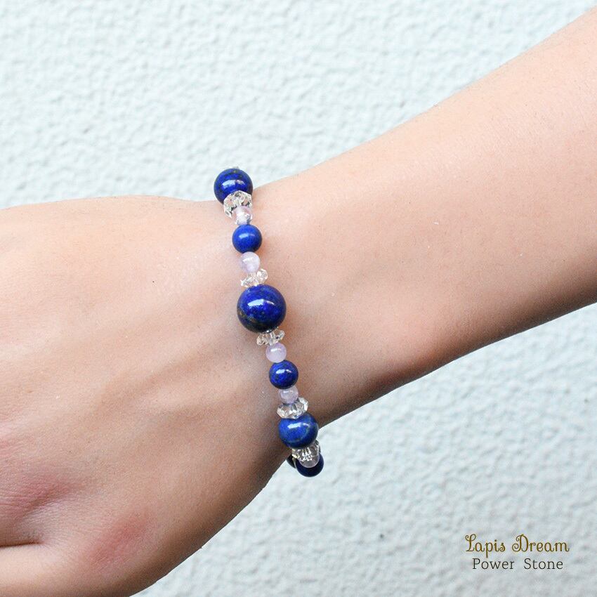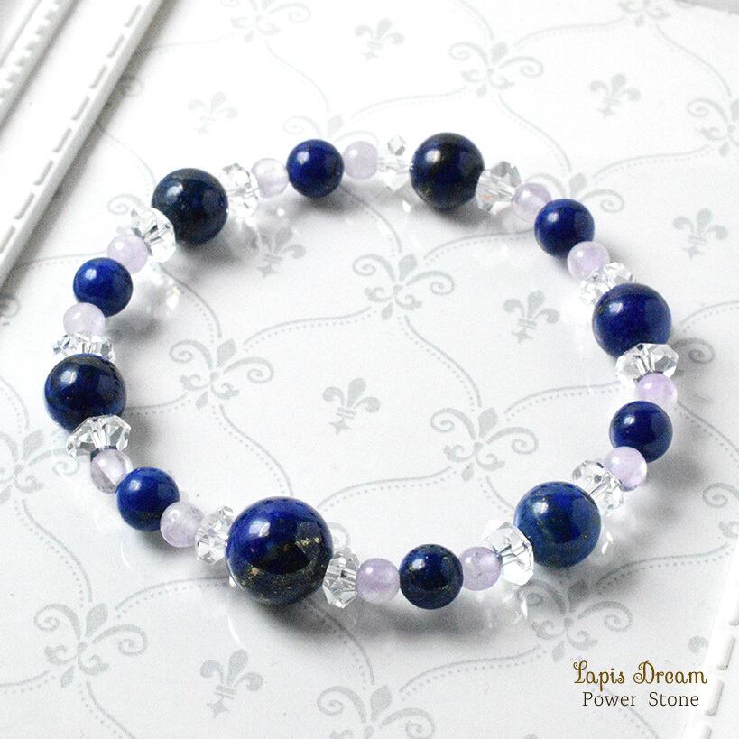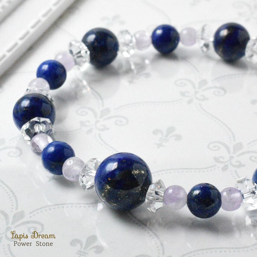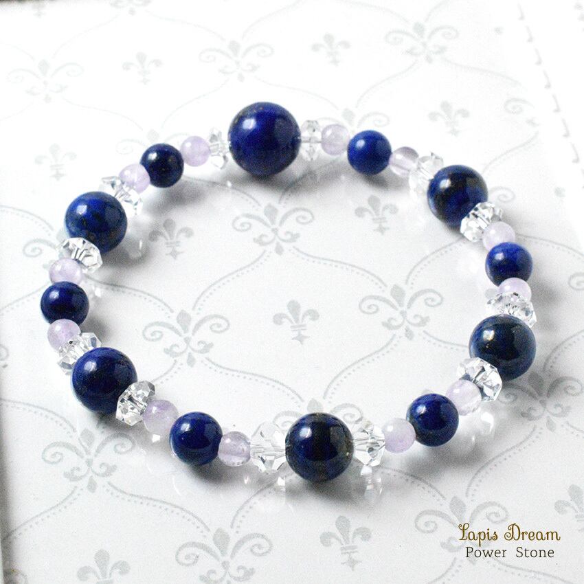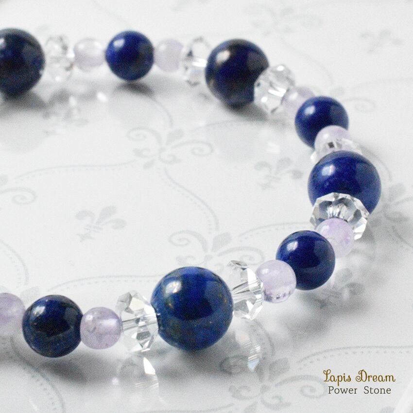 幸運を象徴するラピスラズリと、癒しを与えるラベンダーアメジストを組み合わせた、幸福を引き寄せる特別なパワーストーン ブレスレットです。