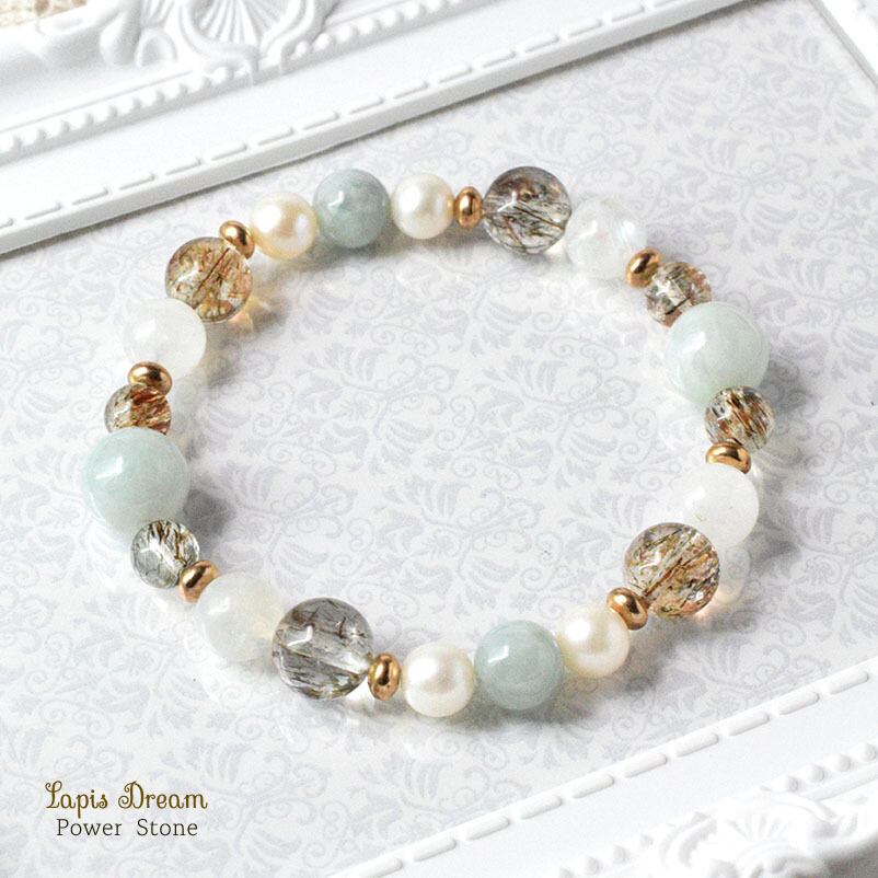 強運を育み、人生を輝かせるお守り | ビルマ翡翠、ブラウンルチルクォーツのパワーストーン ブレスレット