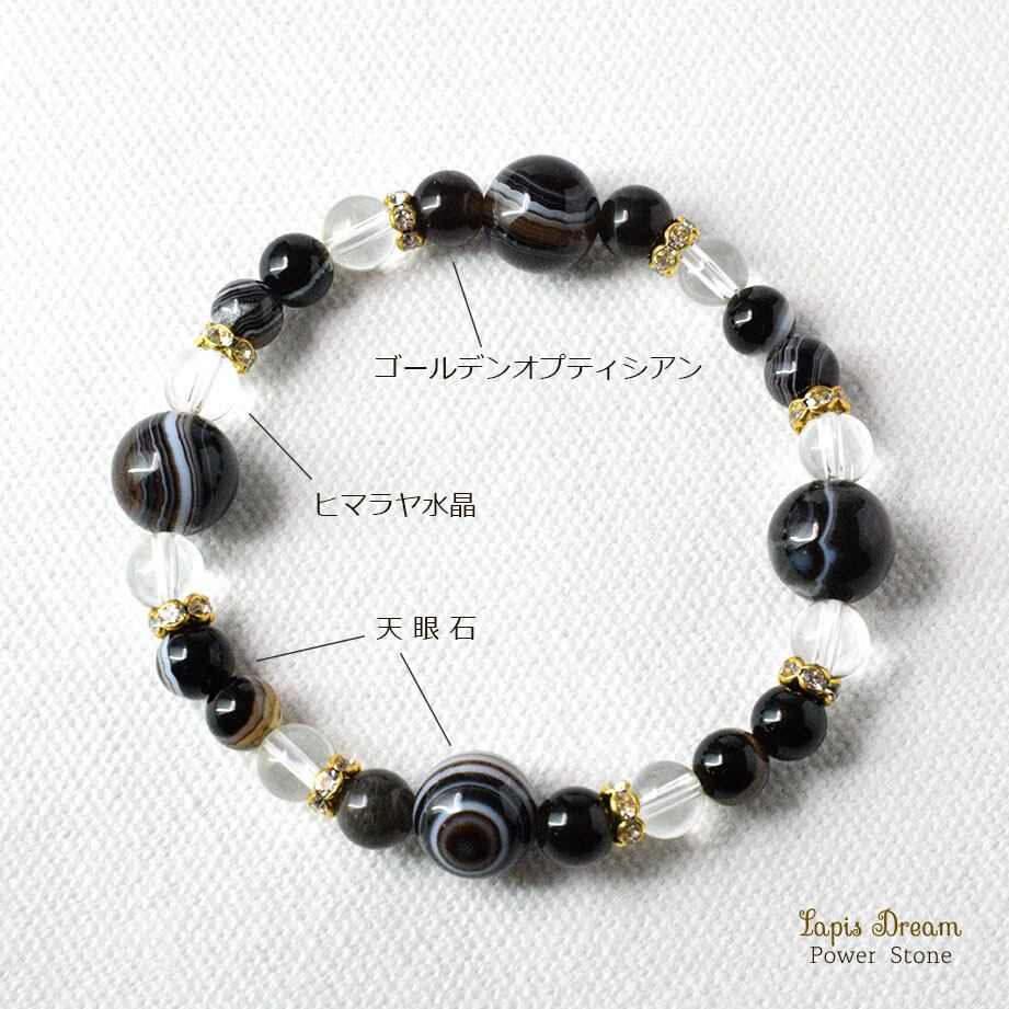 強力な浄化の力を持つ ヒマラヤ水晶 と、悪い氣を祓い幸運を引き寄せる 天眼石 を組み合わせた、特別なパワーストーンブレスレットです。