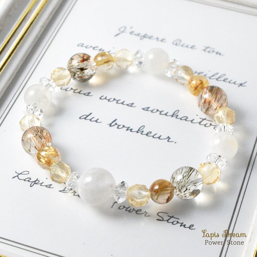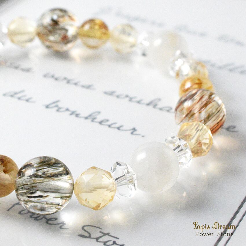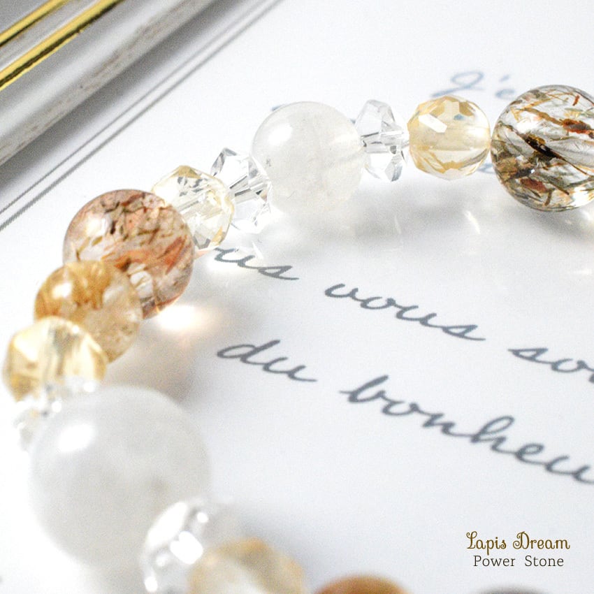 癒しと豊かさを同時に引き寄せるお守り | ムーンストーン、ブラウンルチルクォーツのパワーストーン ブレスレット