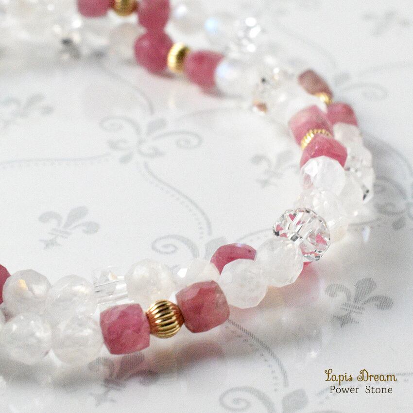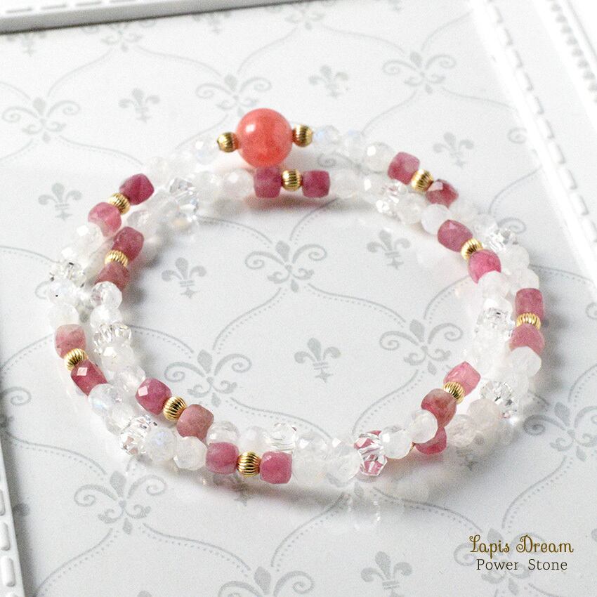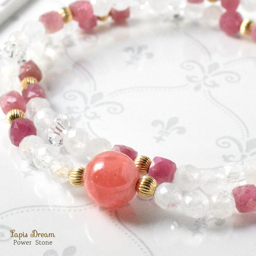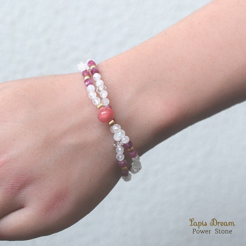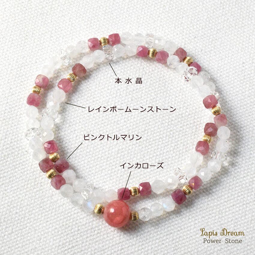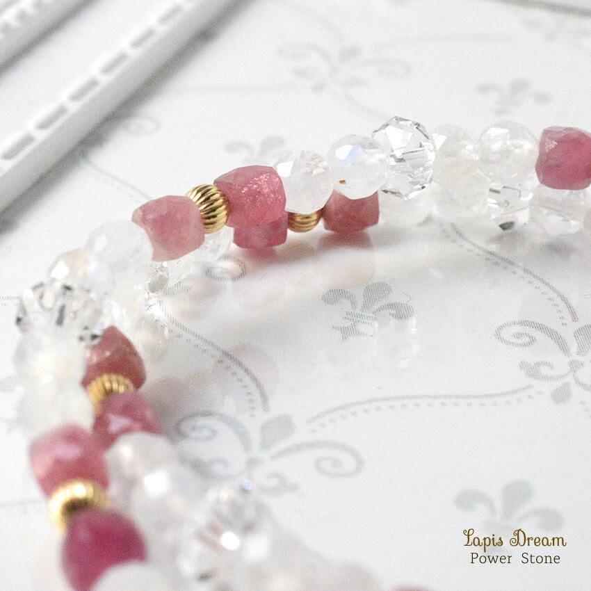 インカローズとピンクトルマリンを組み合わせた、2連で使えるパワーストーン ブレスレットです。