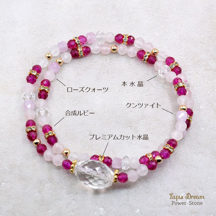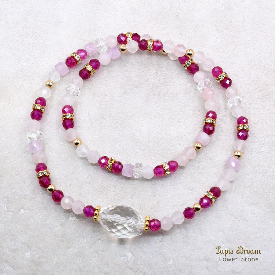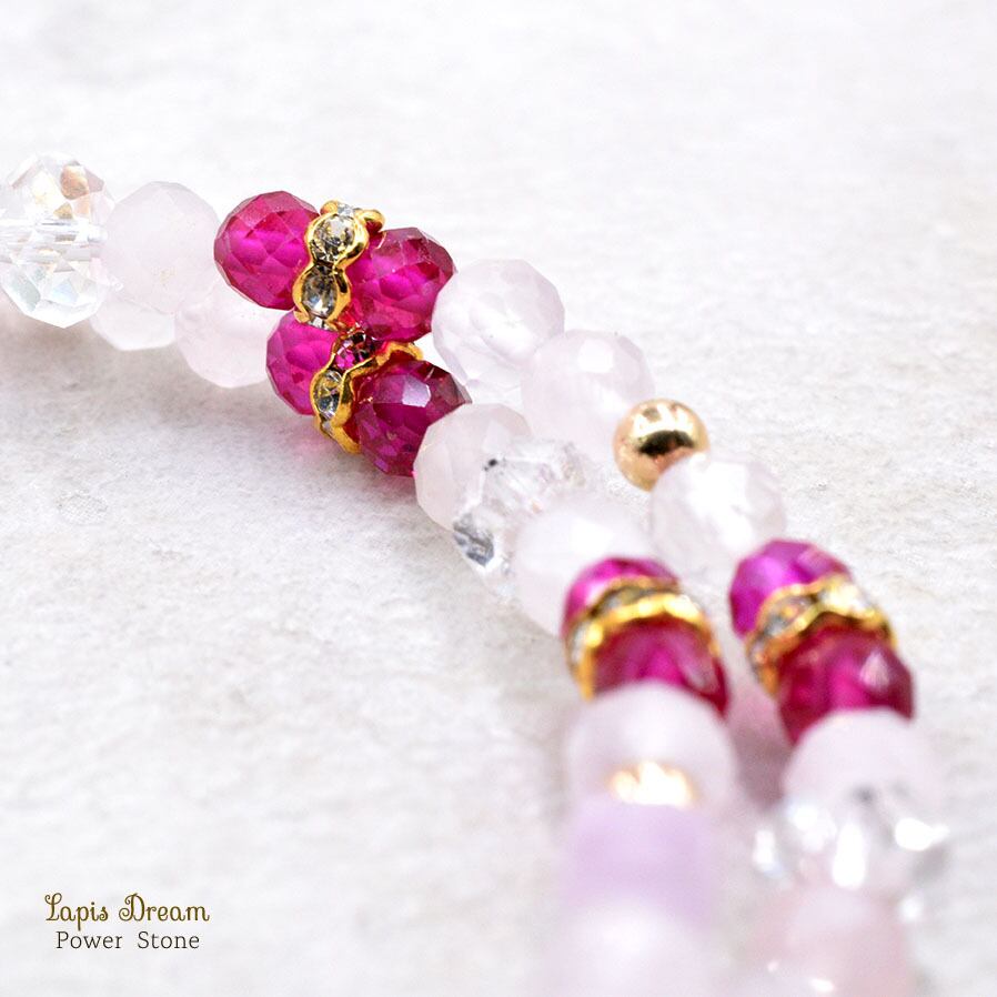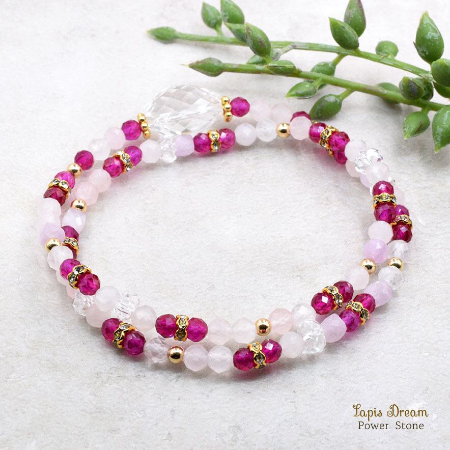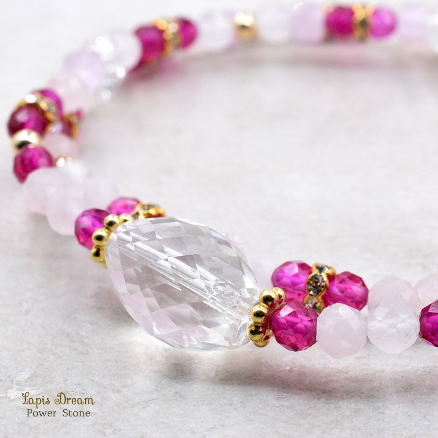 心の奥から幸せを引き寄せるお守り | 合成ルビーとローズクォーツのパワーストーン ブレスレット