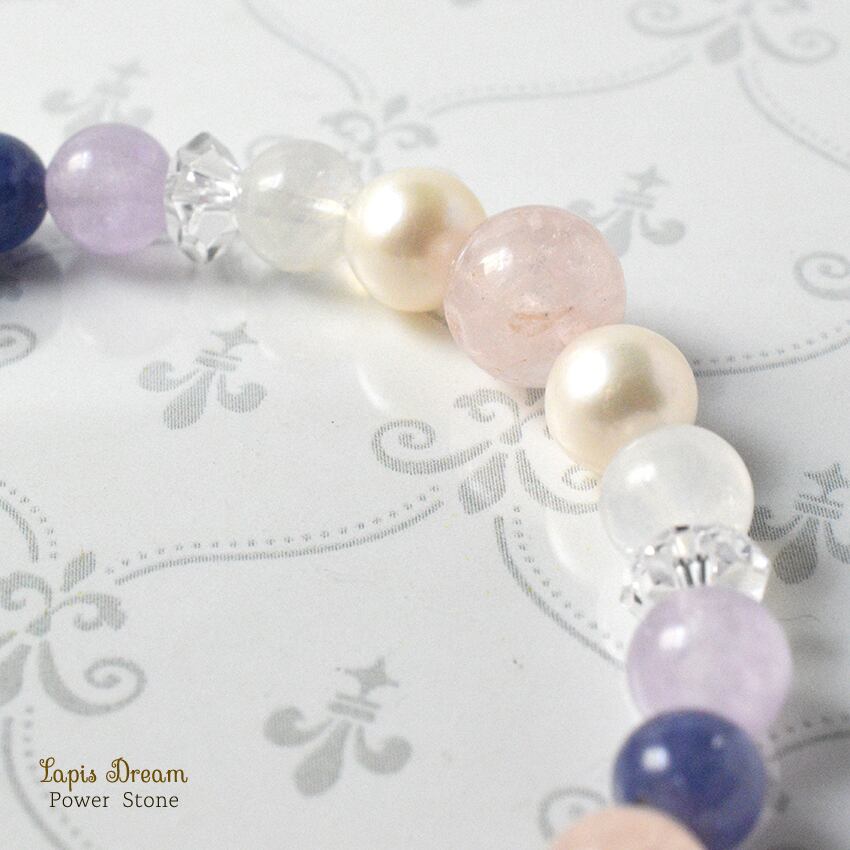 穏やかな愛で満たす ヒーリングのお守り | モルガナイト、淡水パールのパワーストーン ブレスレット