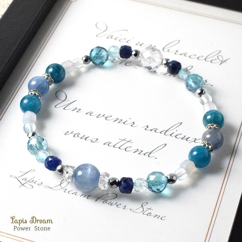 カイヤナイト、アパタイト、ブルートパーズをはじめ、7種類のブルーストーンが心を穏やかに整え、あなたの内側に眠る「真の自分」と静かに向き合わせてくれます。