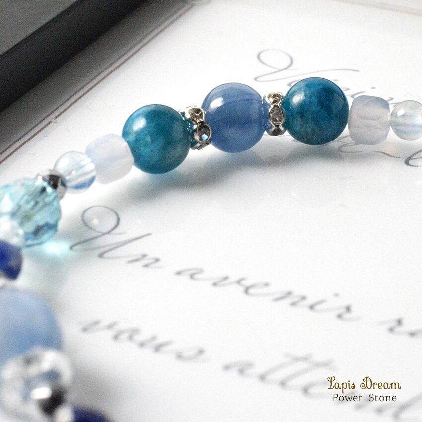 深海のように静かに輝くお守り | カイヤナイト、アパタイトのパワーストーン ブレスレット