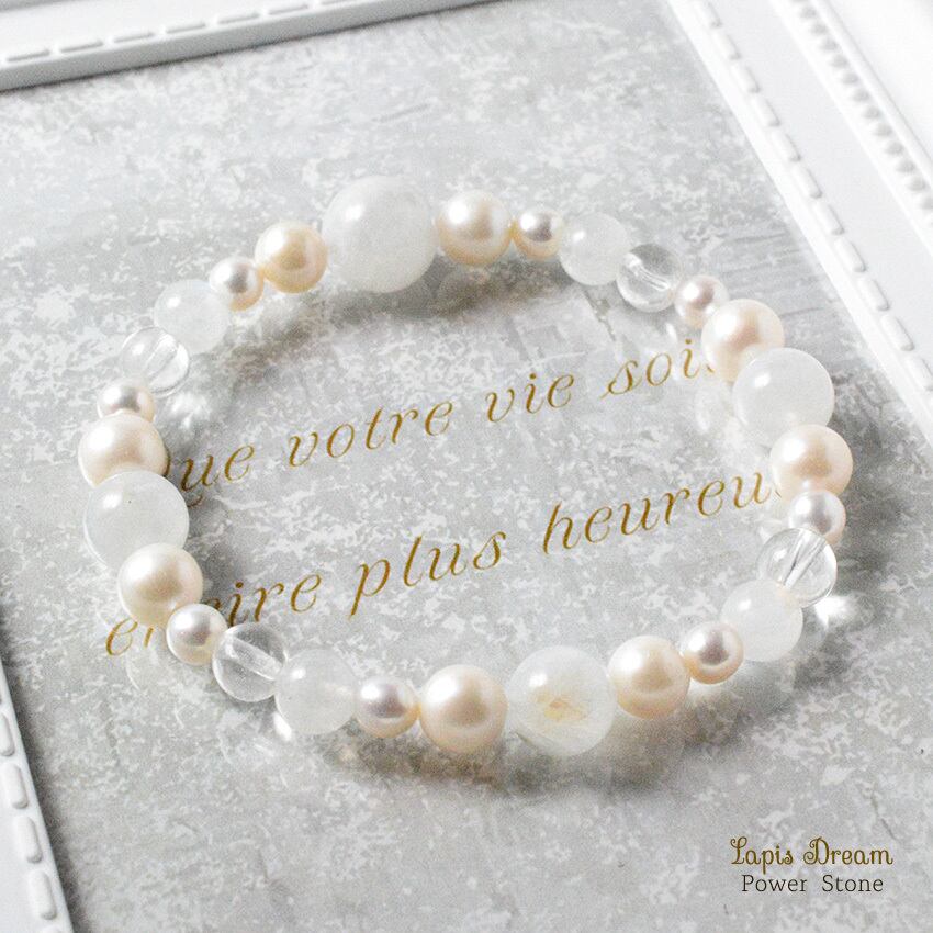 心を浄化し、未来を照らす幸運のお守り | ムーンストーン、淡水パールのパワーストーン ブレスレット