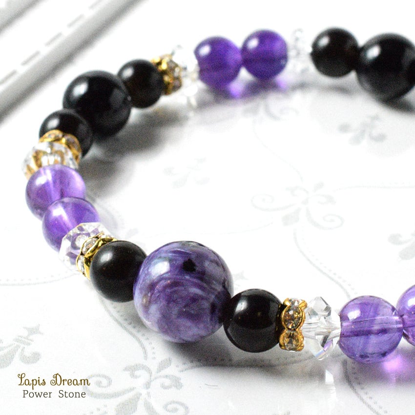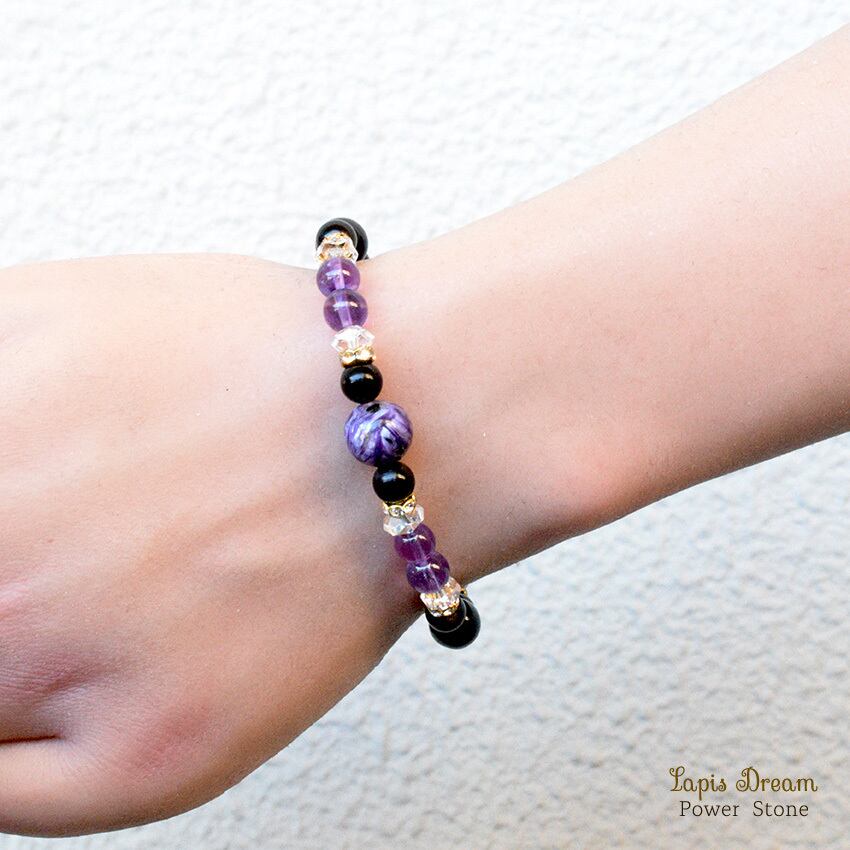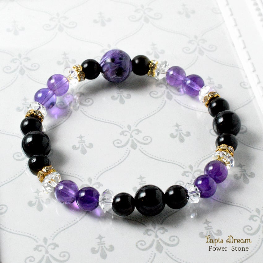 強い清浄の波動が宿るお守り | チャロアイト、オニキスのパワーストーン ブレスレット