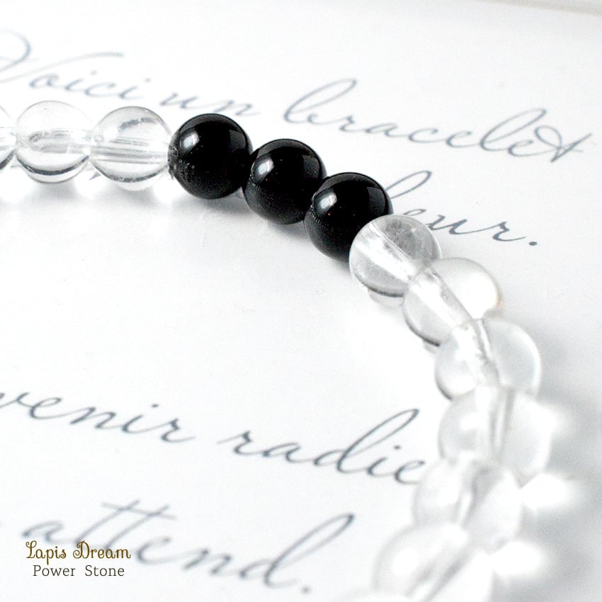 ヒマラヤ水晶とモリオンを組み合わせた「ヒマラヤの光が導く高次元のお守り」のパワーストーンブレスレットです。