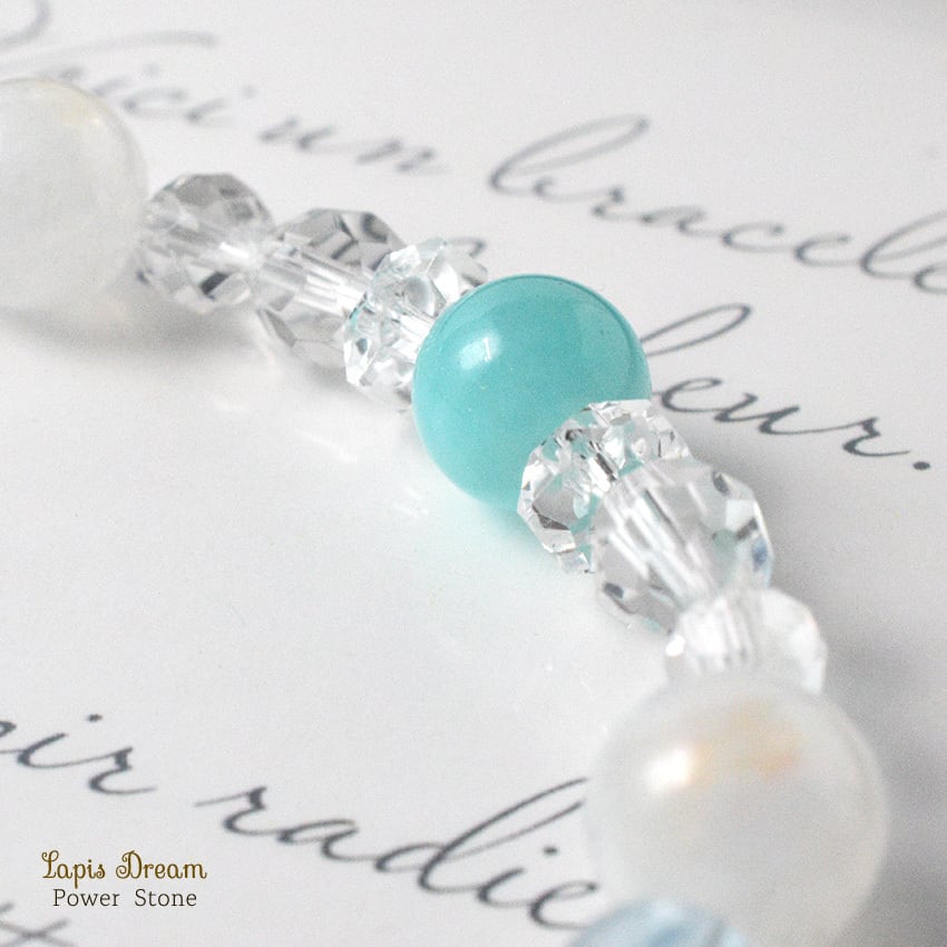 アイリスクォーツとアマゾナイトを組み合わせた、やさしい光が心に希望を育てるパワーストーンブレスレットです。
