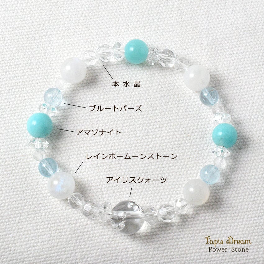 穏やかな光が希望を育む虹のお守り | アイリスクォーツ、アマゾナイトのパワーストーン ブレスレット