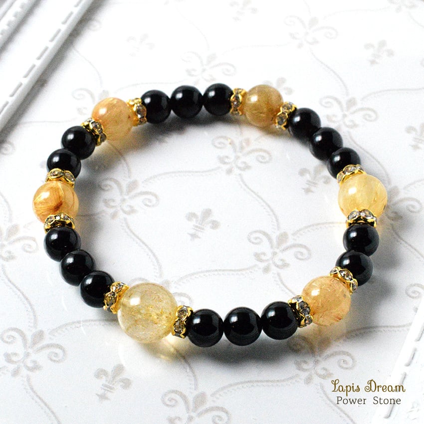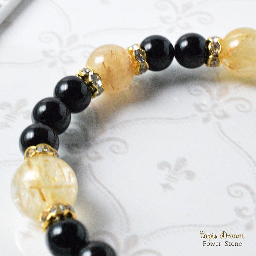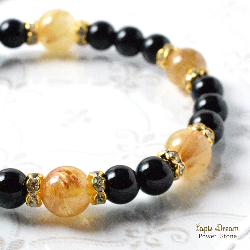 悪い氣を浄め、幸運を掴む金色のお守り | ルチルクォーツとモリオンのパワーストーン ブレスレット