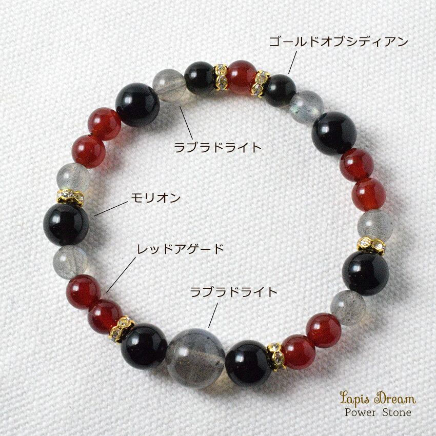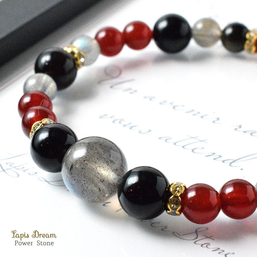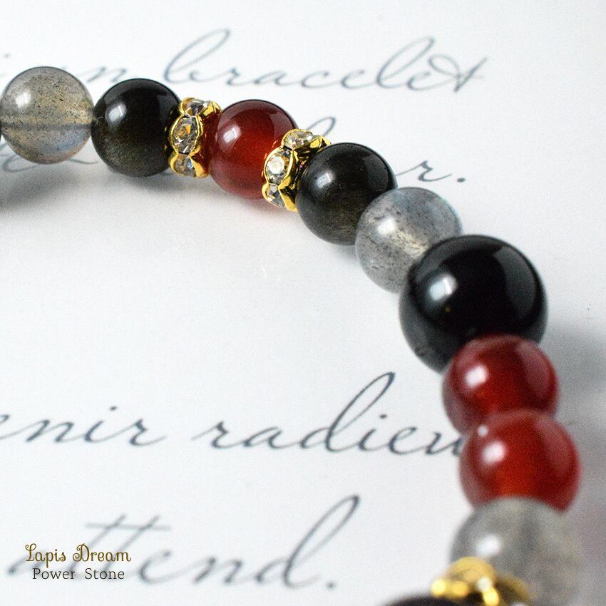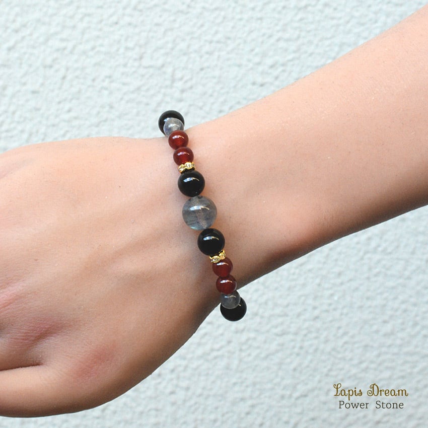 負の流れを断ち切る内なる結界のお守り | ラブラドライト、レッドアゲードのパワーストーン ブレスレット