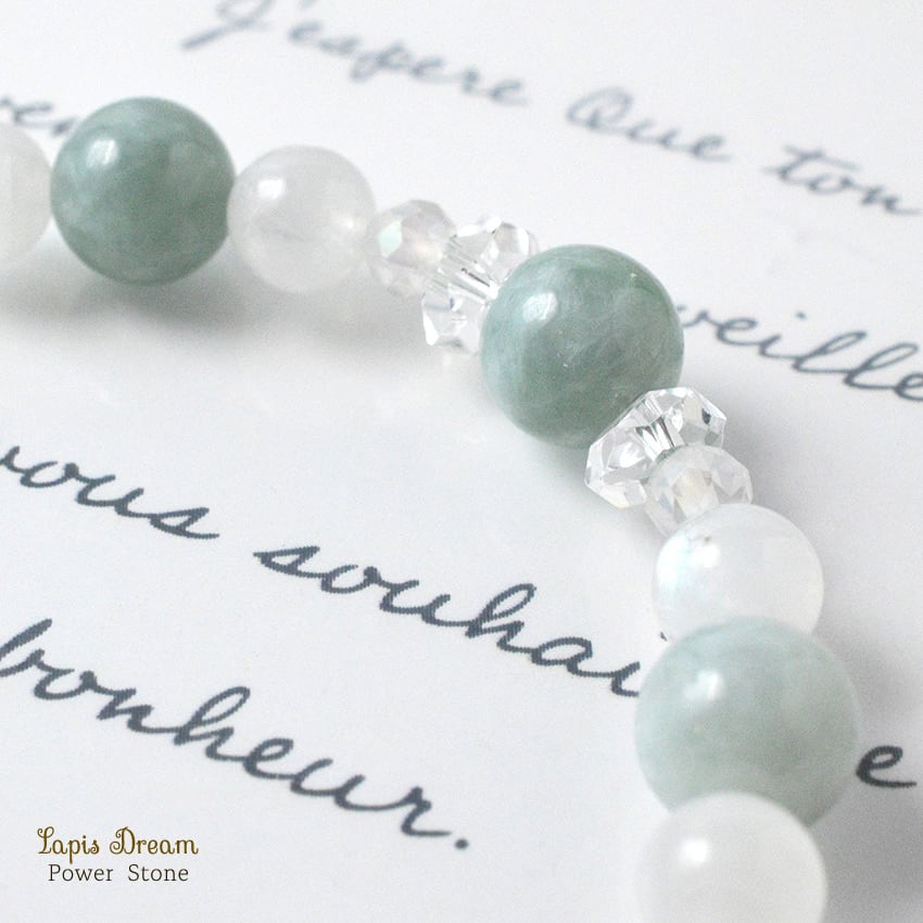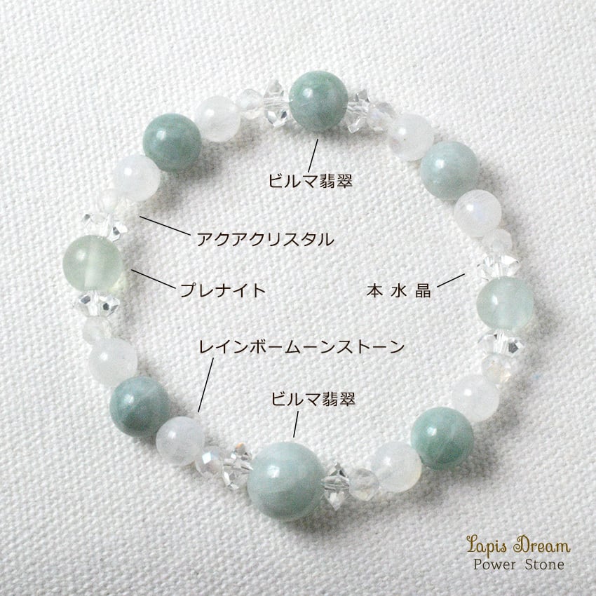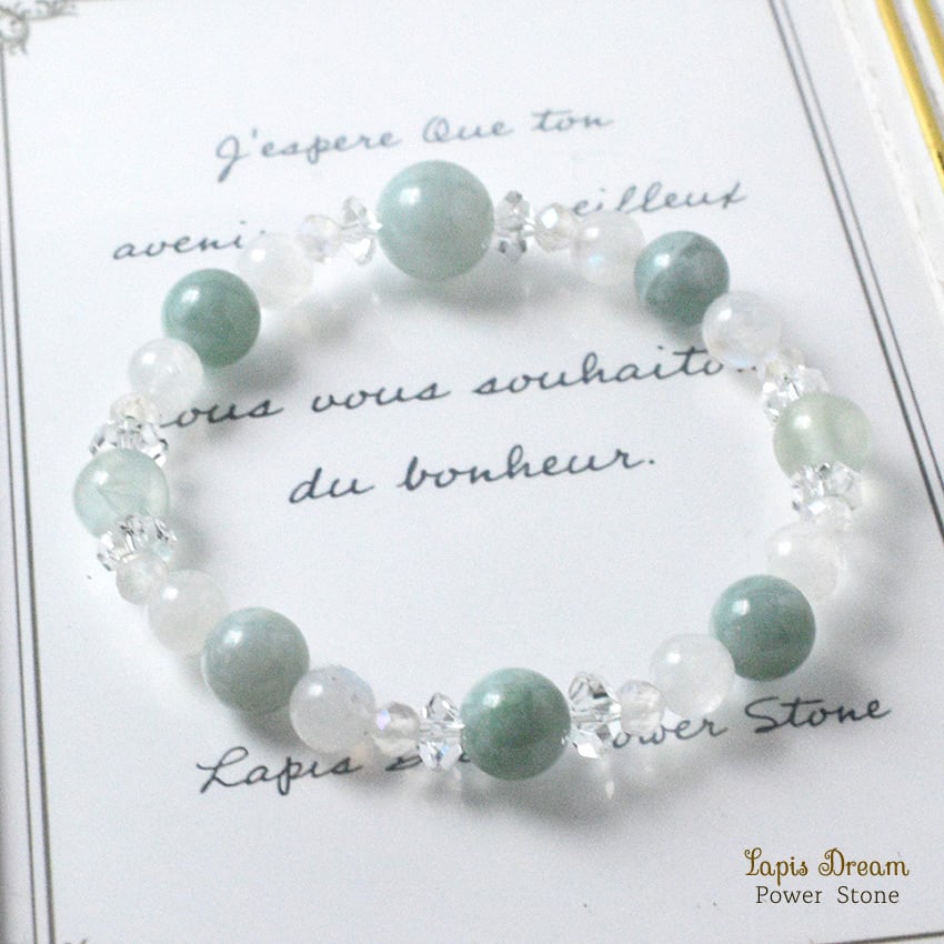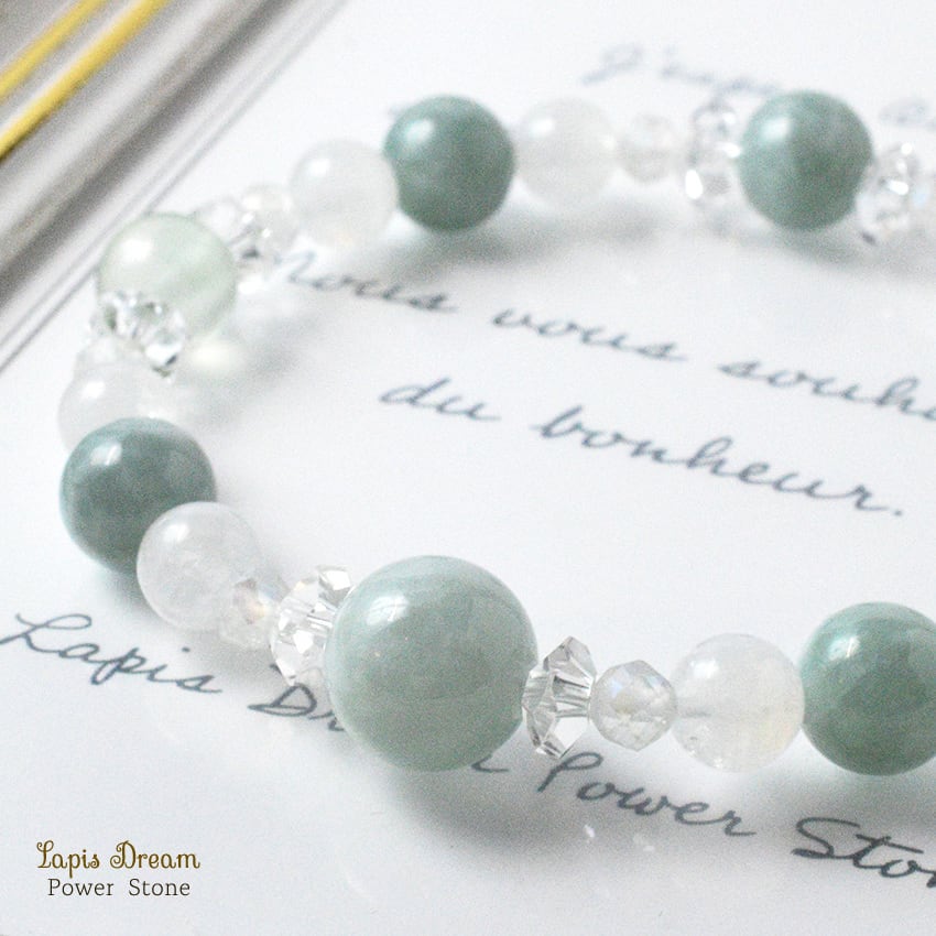 穏やかな幸運が巡るお守り | ビルマ翡翠、ムーンストーンののパワーストーン ブレスレット