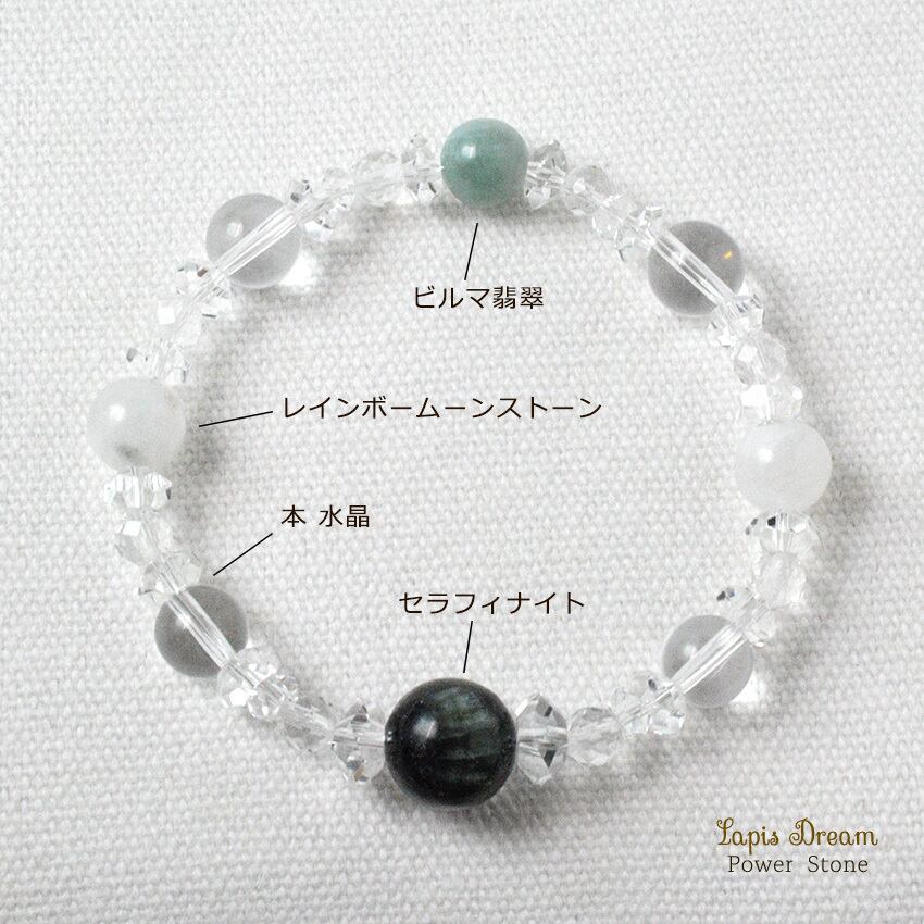 心と運命を優しく整える、癒しのお守り | セラフィナイト、ビルマ翡翠の天然石パワーストーン ブレスレット