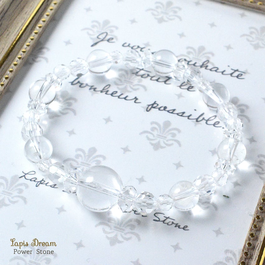 その厳しい自然の中で長い年月をかけて育まれたヒマラヤ水晶と、ブラジル産の最高品質の水晶を丁寧に紡いだパワーストーン ブレスレットです。