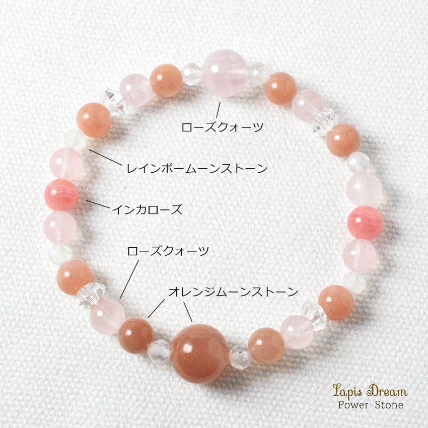 運命の恋を引き寄せるお守り | オレンジムーンストーン、インカローズのパワーストーン ブレスレット