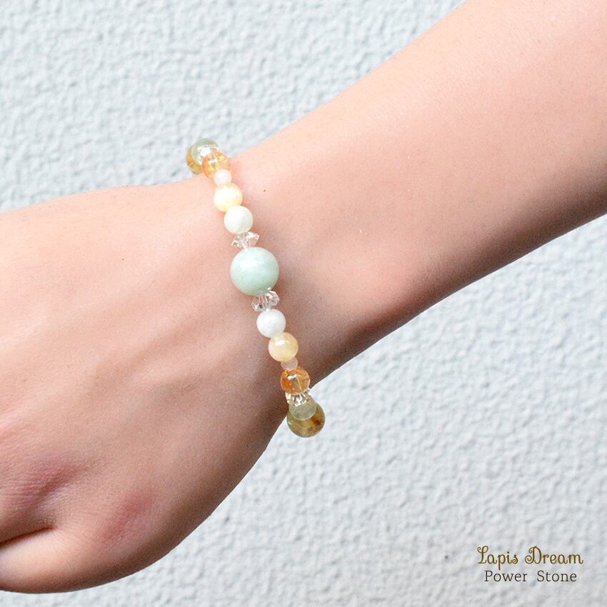 これは、幸運と豊かさをやさしく引き寄せることを願って仕立てた、パワーストーン ブレスレットです。