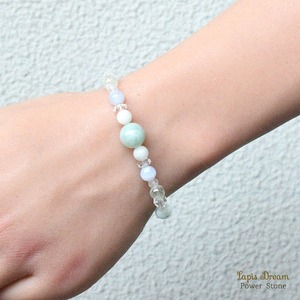 やさしく落ち着いた色合いの天然石が手元でそっと寄り添い、普段使いにもなじむブレスレットです。
