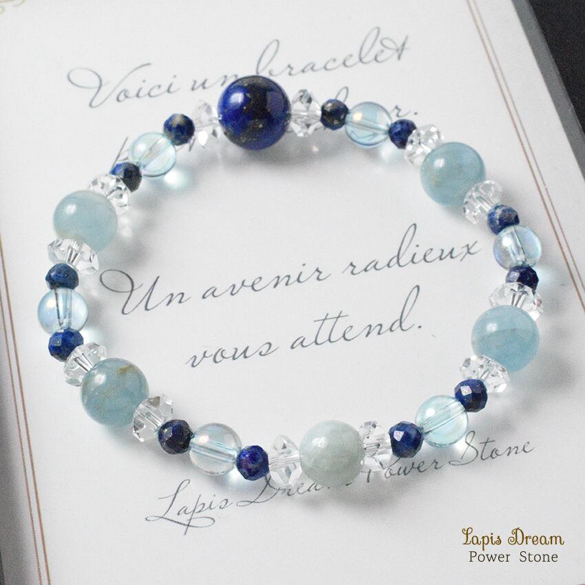 毎日に幸せを重ねていく 幸運のお守り | ラピスラズリ、ブルーカルサイトのパワーストーン ブレスレット