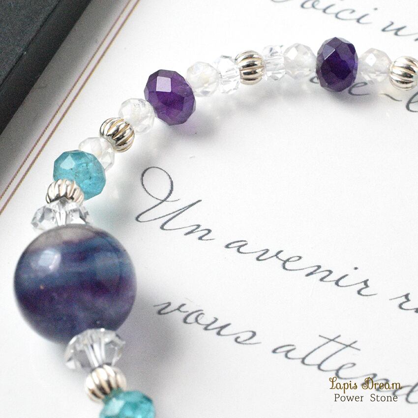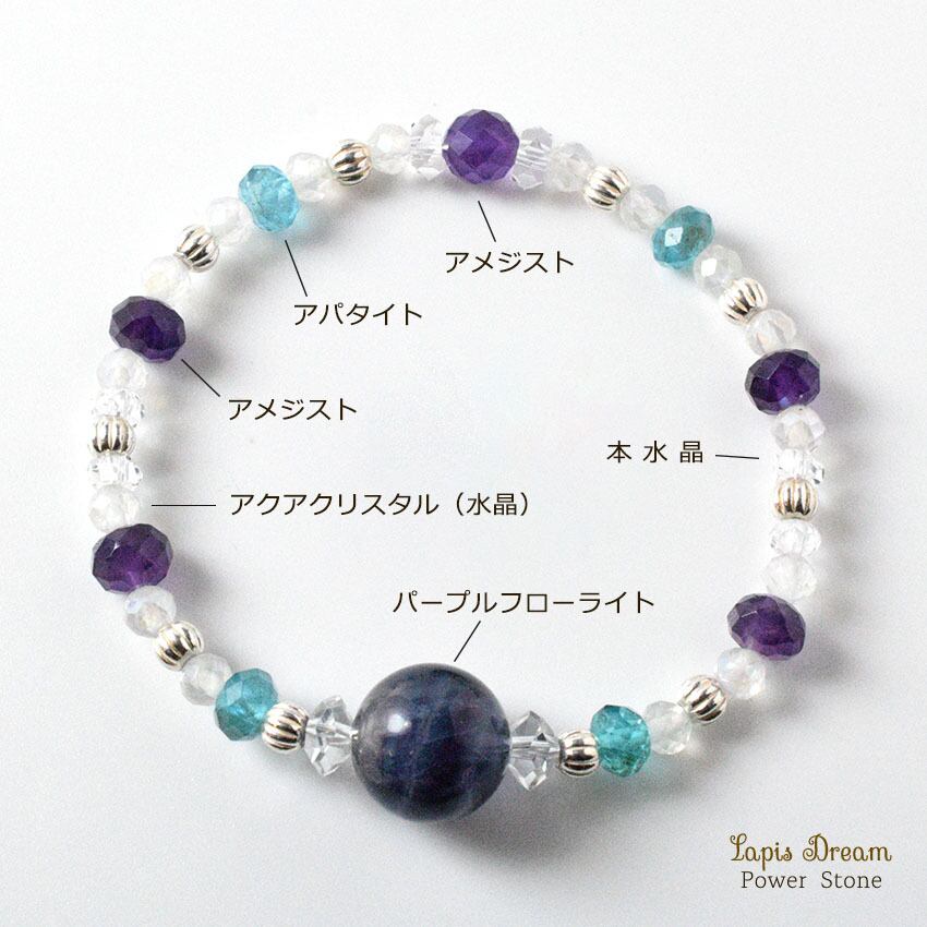 不安をやわらげ 心を静けさへ導くお守り | パープルフローライト、アメジストのパワーストーン ブレスレット