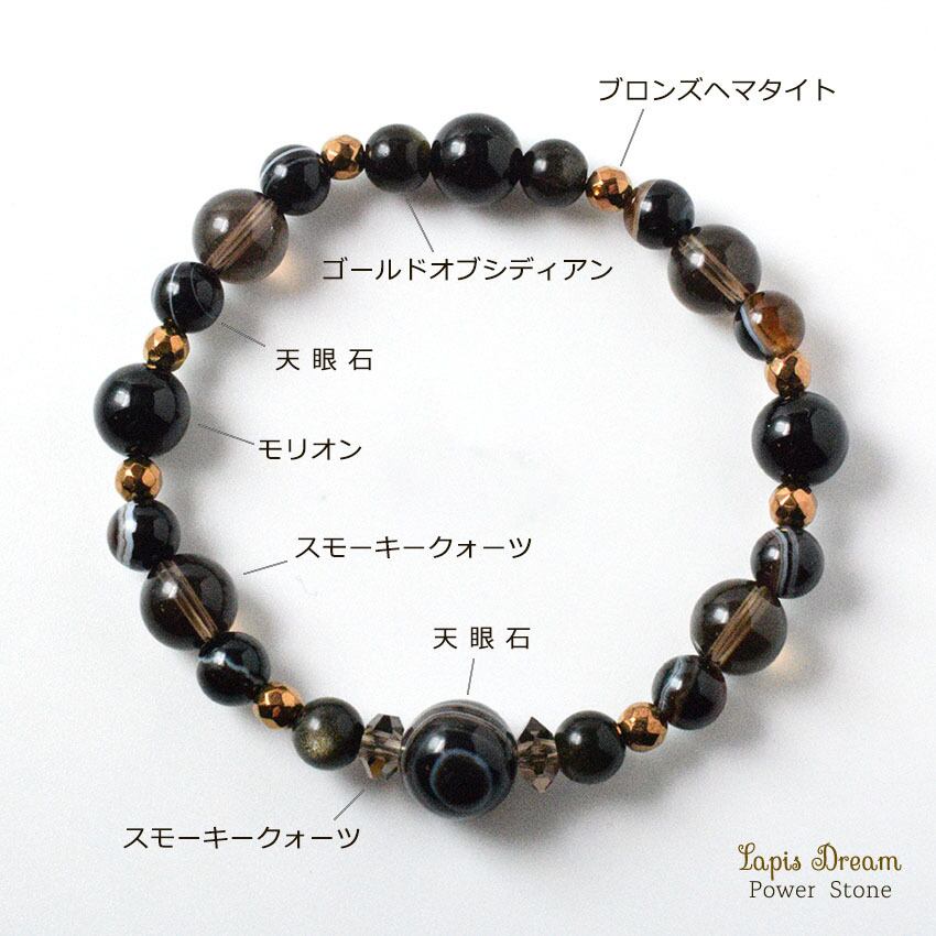 不要な気を払い心守るお守り | 天眼石、モリオン、スモーキークォーツの天然石パワー.ストーン ブレスレット