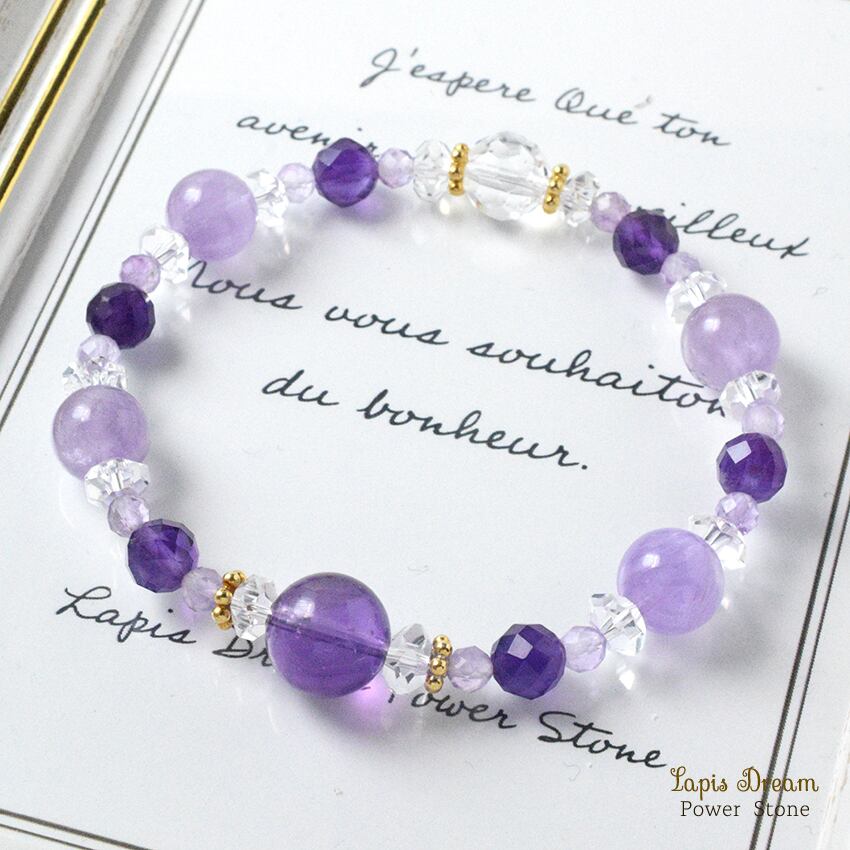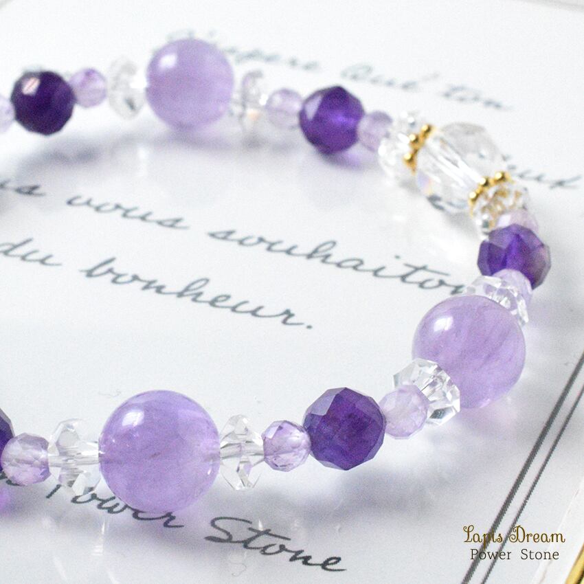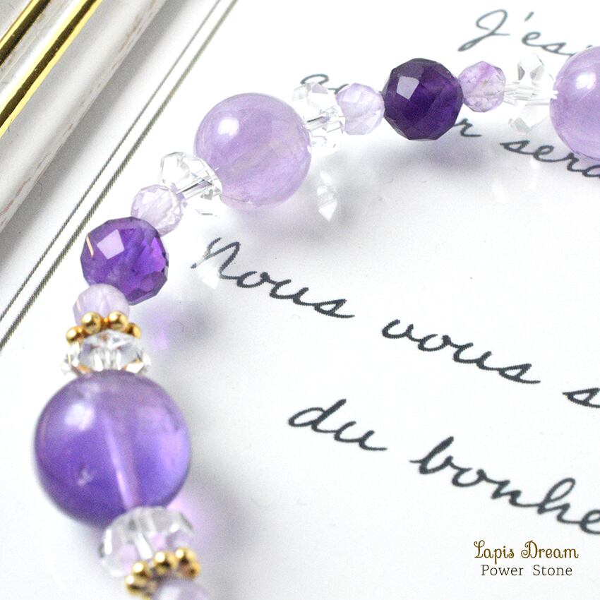 穏やかな幸せに包まれるお守り | アメジストとラベンダーアメジストのパワーストーンブレスレット