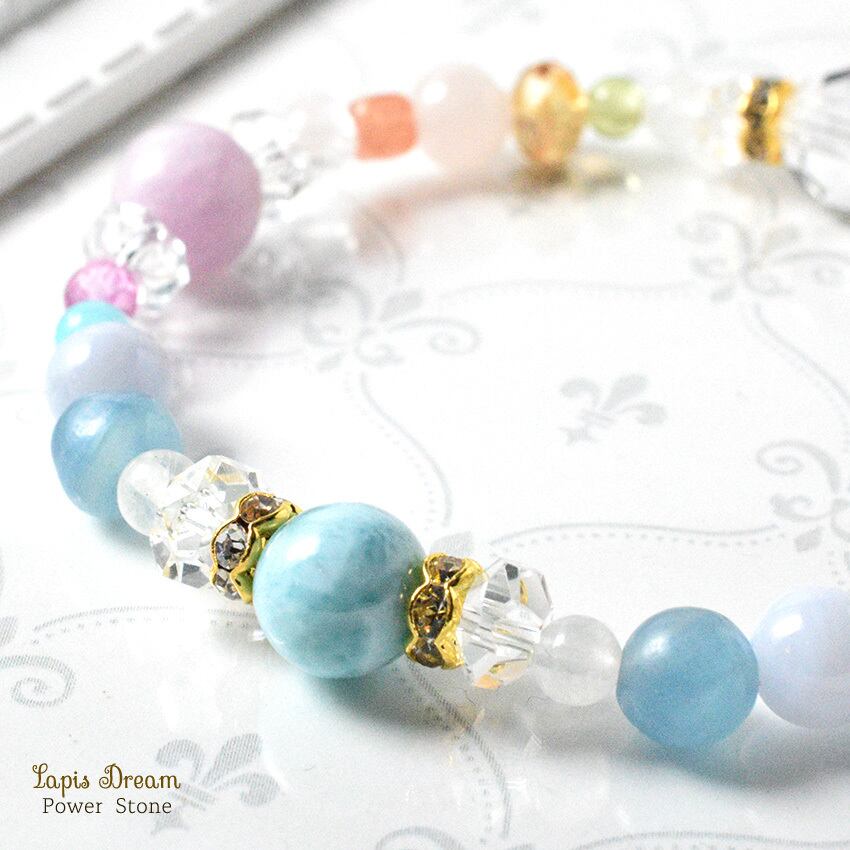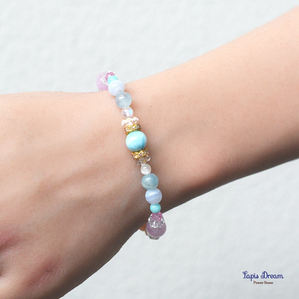 ストレスを緩和させて癒しを与えるお守り | ラリマー、クンツッァイトのパワーストーン ブレスレット