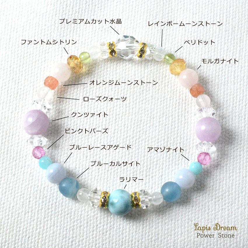 そして、天然石のパワーだけでなく見た目にも「身に着けるとウキウキと楽しい気分になる」、「精神的に晴れやかになる」と言った、とにかく元気な気持ちになって頂けるパワーストーン ブレスレットを制作しました。