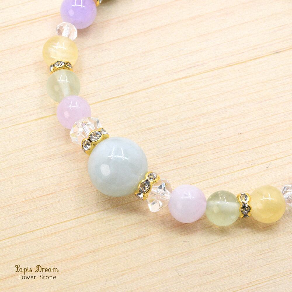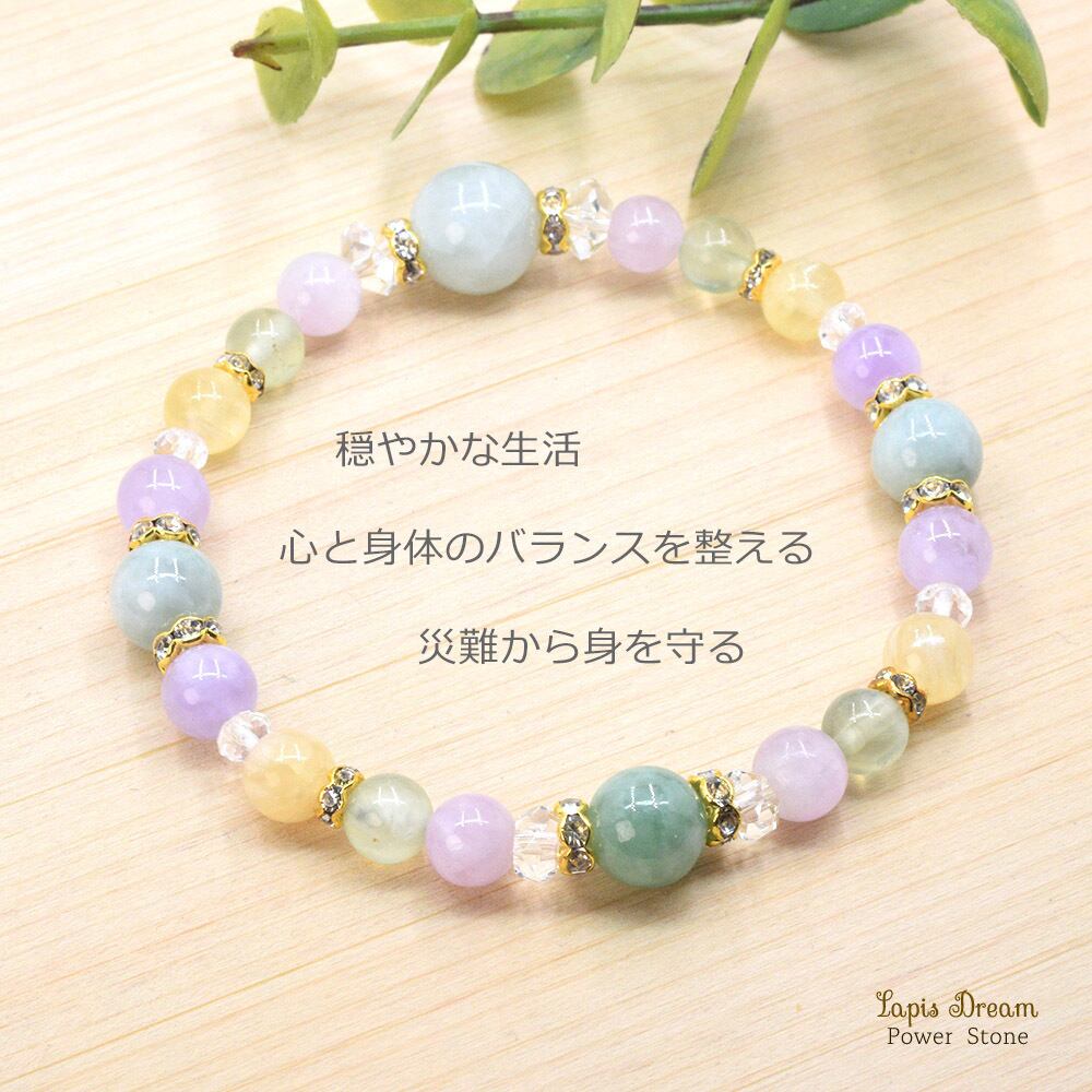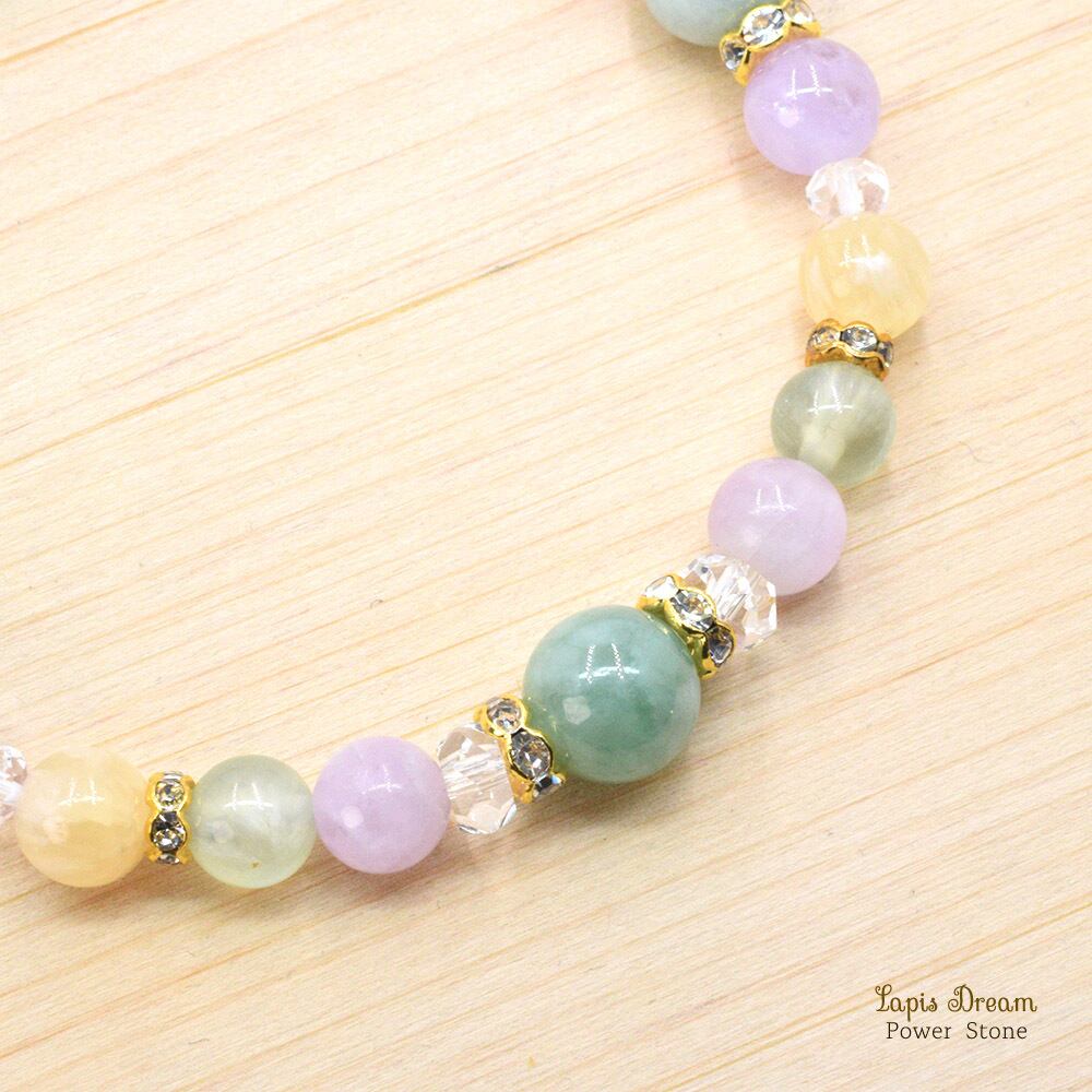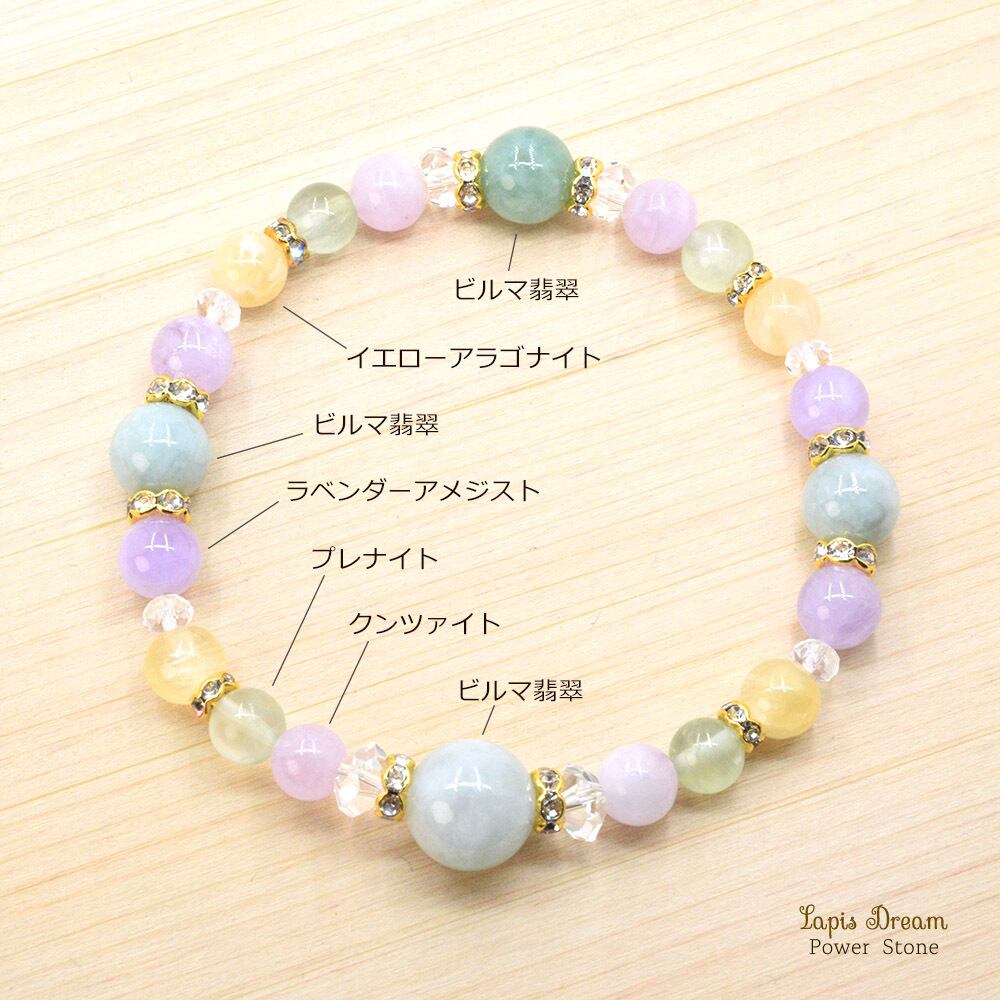 穏やかな気持ち。心に癒しを与えるお守り | ビルマ翡翠、クンツァイトのパワーストーン ブレスレット