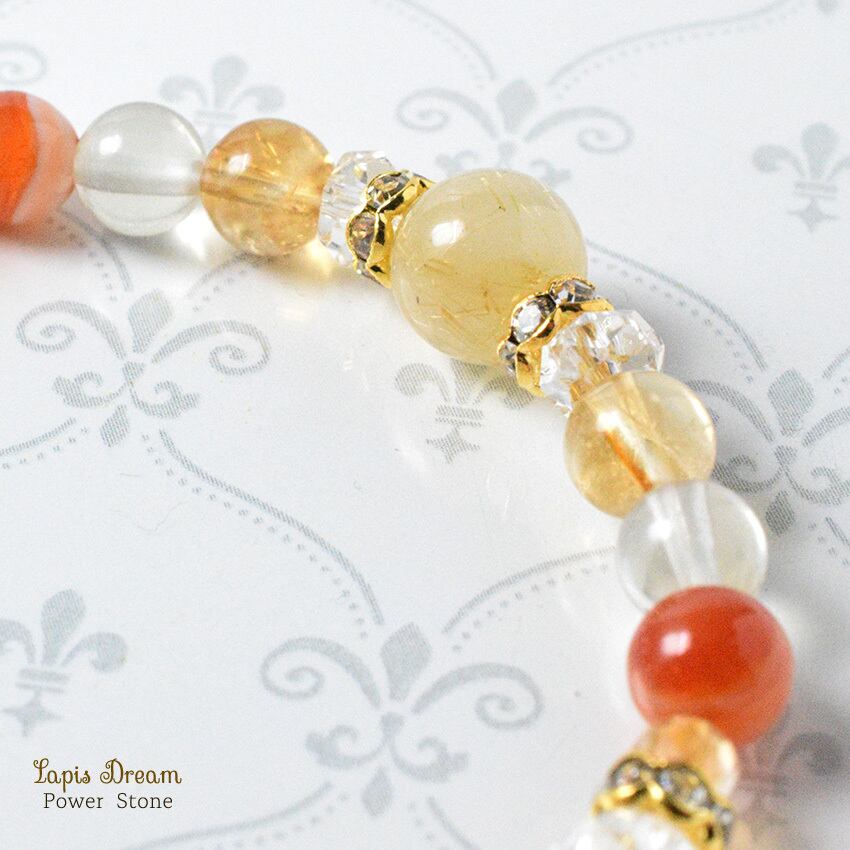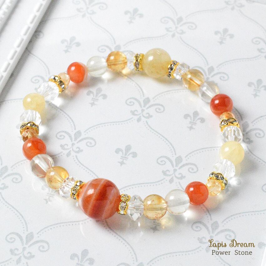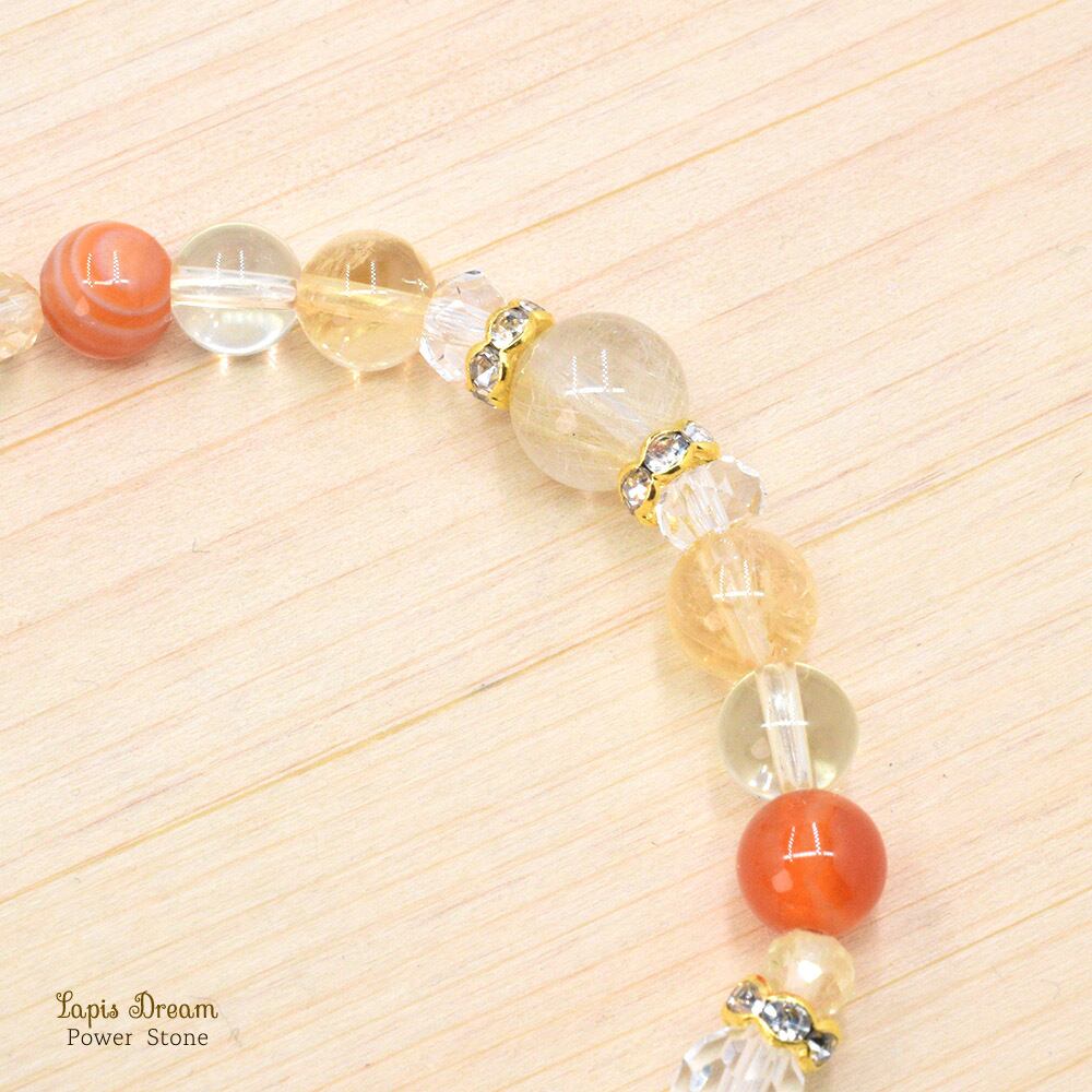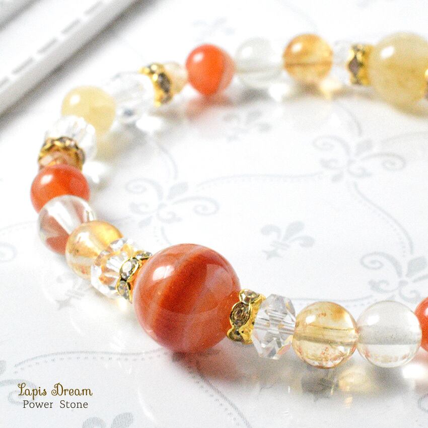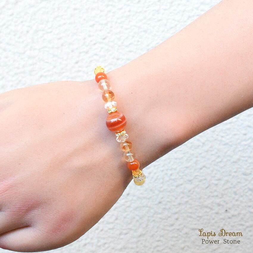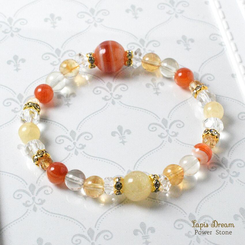 「生命力を高める」「心身の疲れを癒す」効果のあるシトリンを配し、「災いを遠ざけて、幸せな人間関係をもたらす」パワーストーン ブレスレットを制作しました。