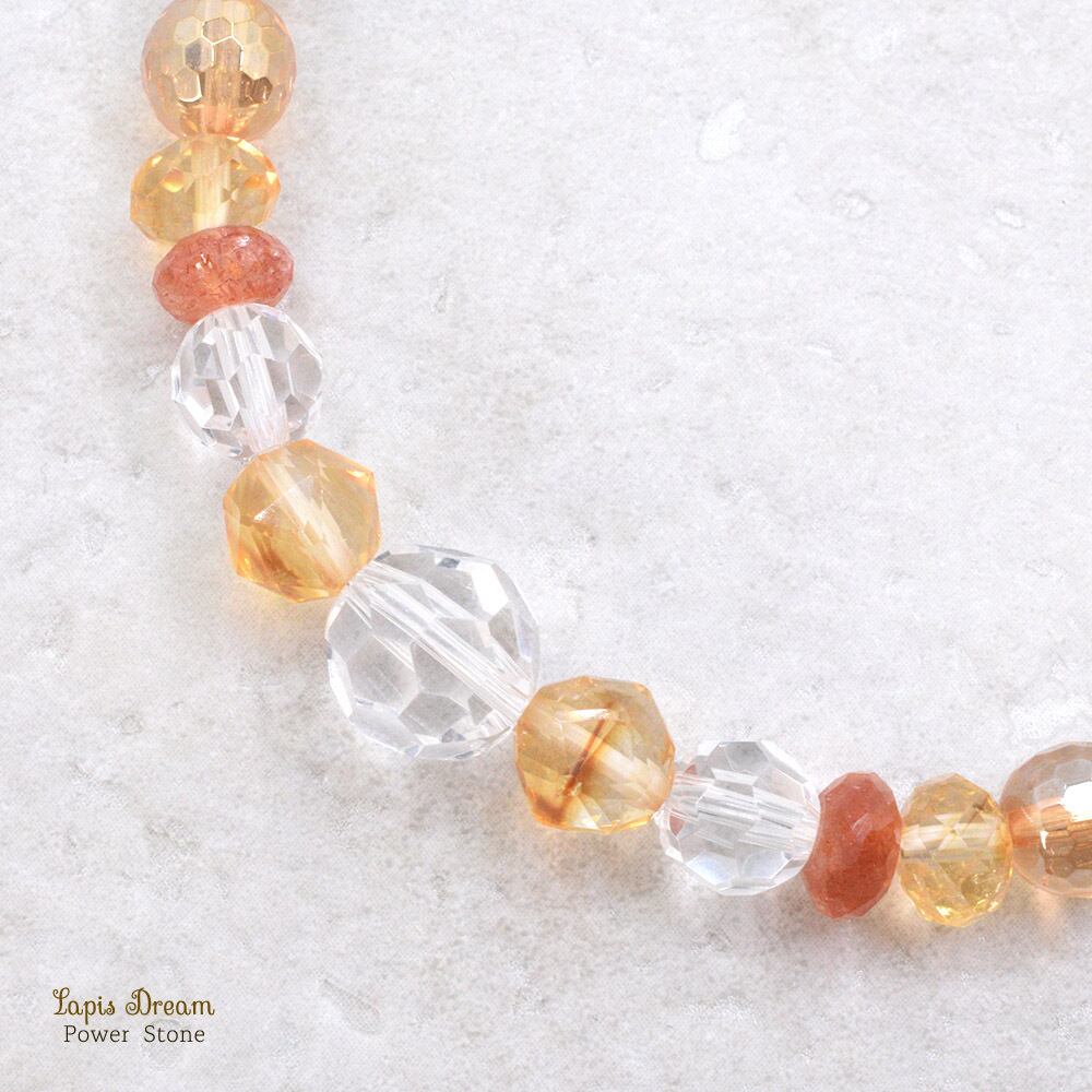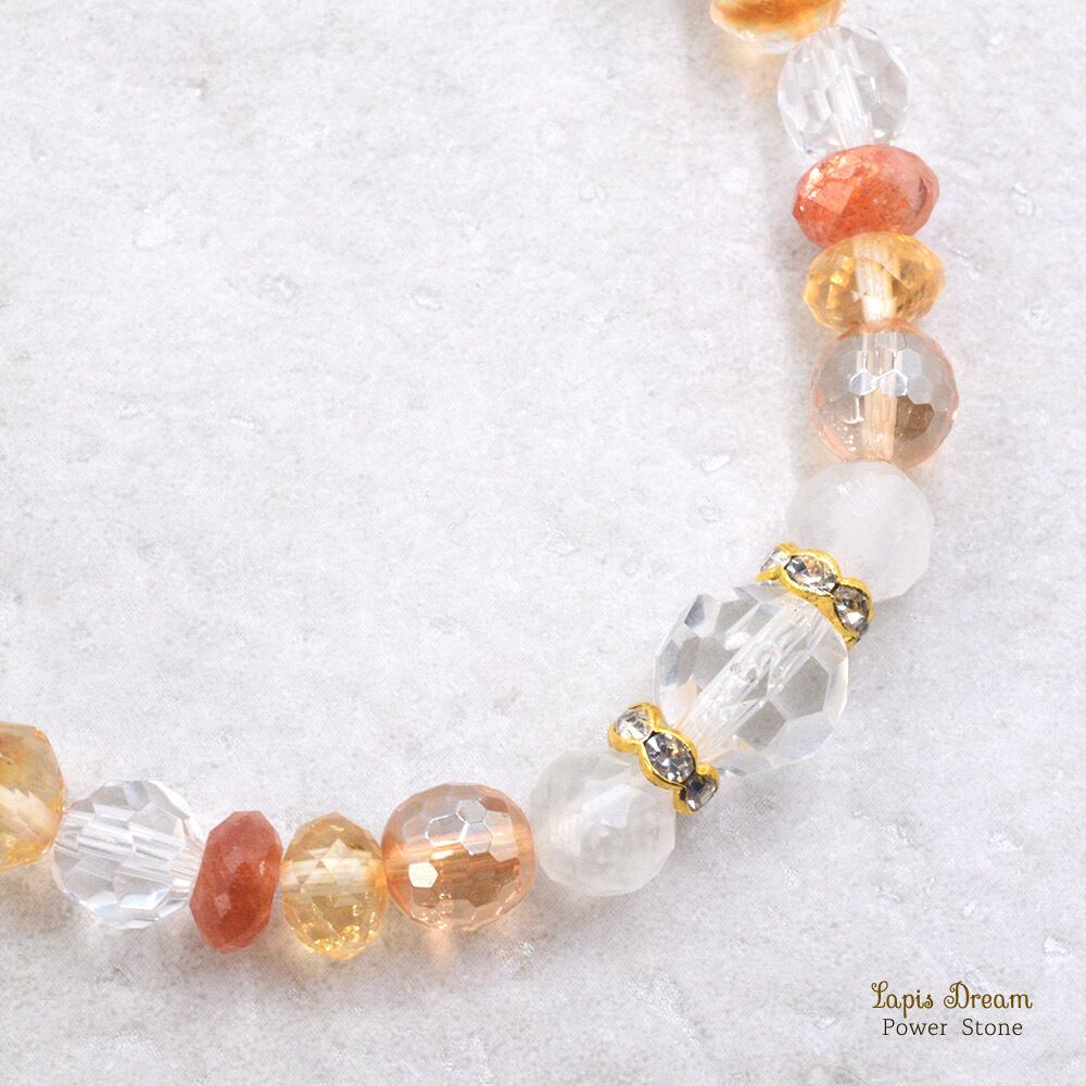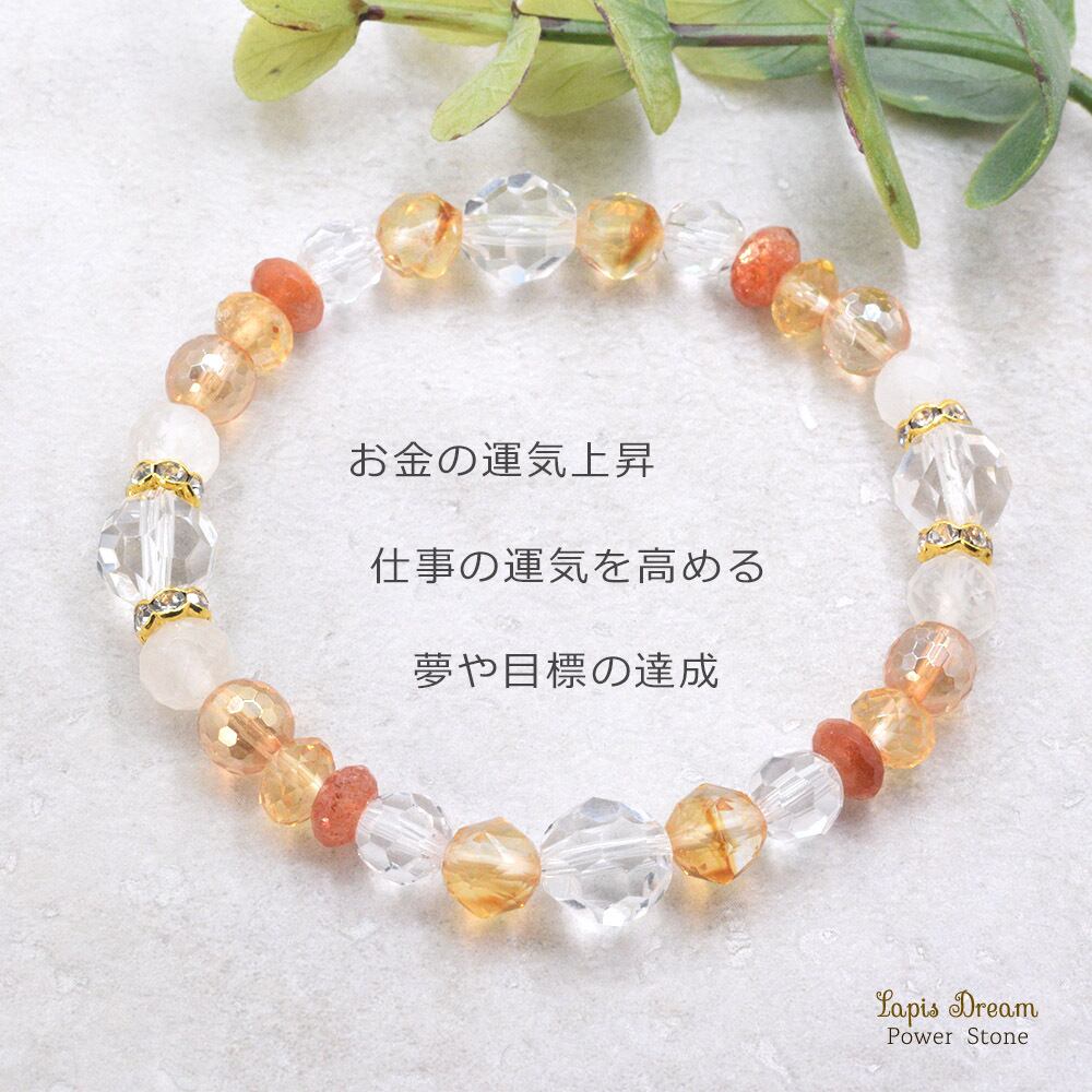 その シトリン をメインに、「目標達成・願望成就」「幸せを引き寄せる」と言われるキラキラと眩い ゴールデンオーラ と サンストーン を組み合わせた「仕事の運気を上昇させて、経済的にも豊かになるパワーストーン ブレスレットを制作しました。