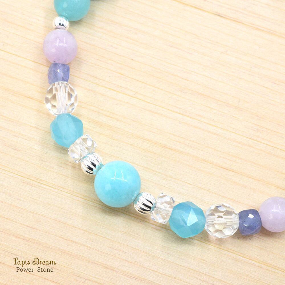 「疲れた心を癒やす」効果があるクンツァイトを配して「明るい希望に満ち溢れる」パワーストーン ブレスレットを制作しました。