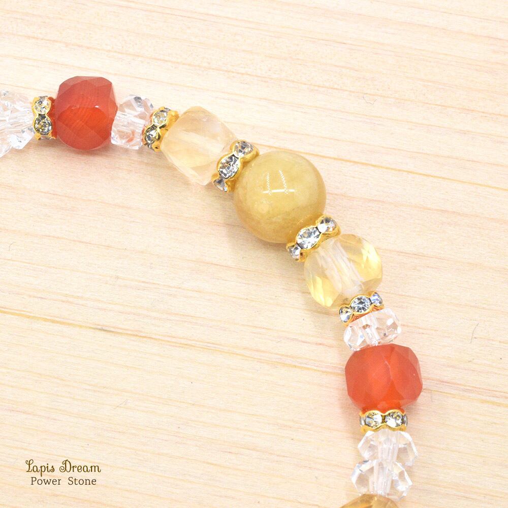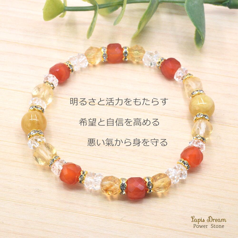 まずは心に活力を与え、「前向きな気持ちで願望達成」の願いを込めて、このブレスレットを制作しました。