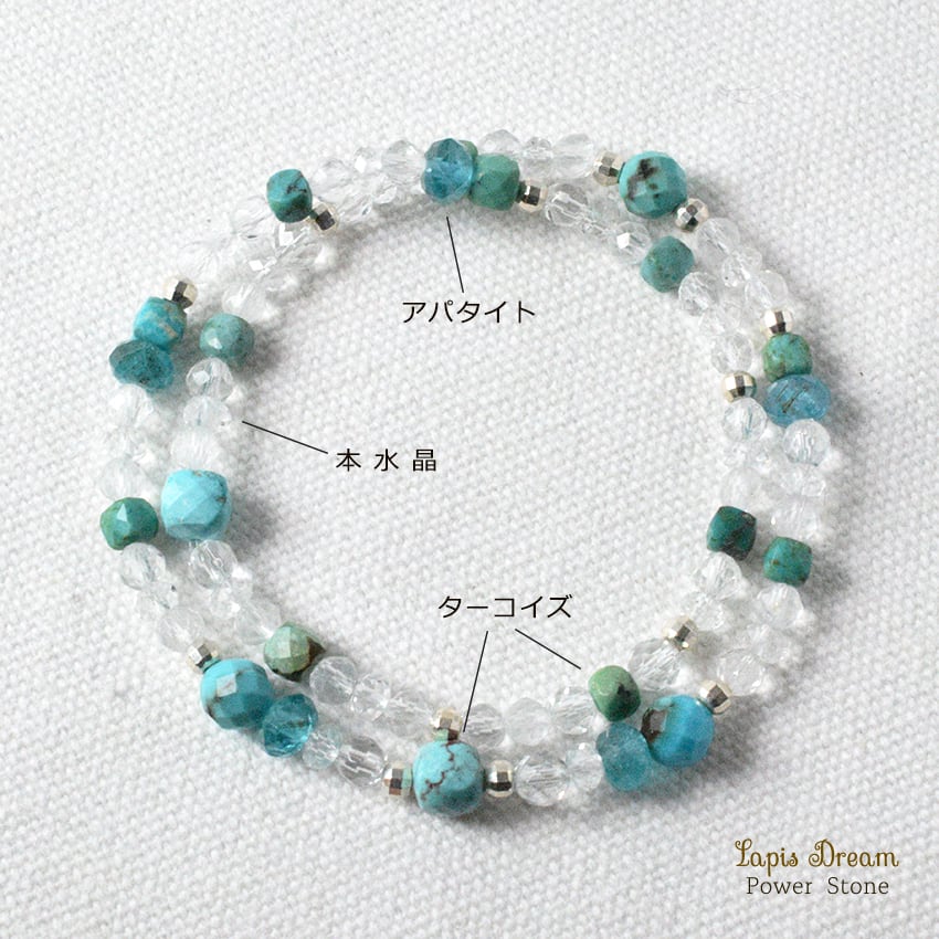 悪い氣を払って幸運を呼び込むお守り | ターコイズ、アパタイトのパワーストーン ブレスレット