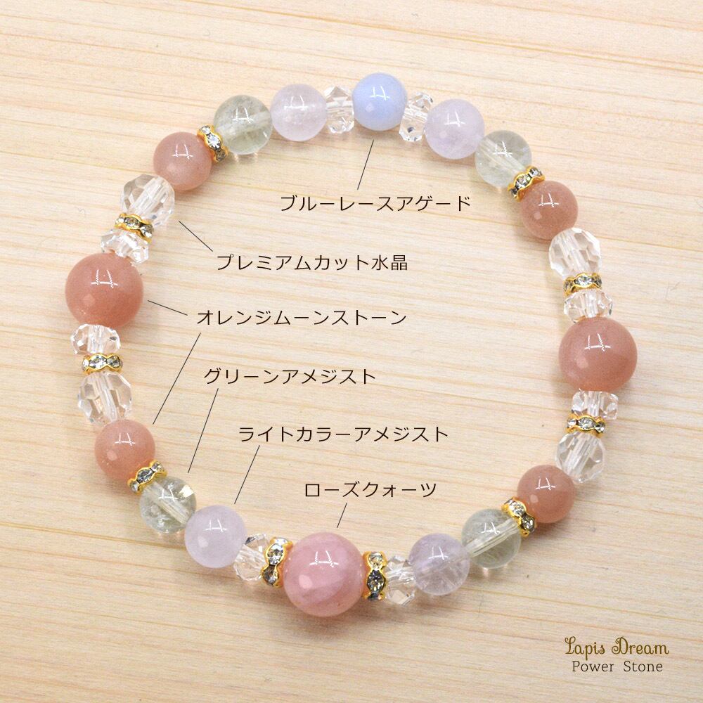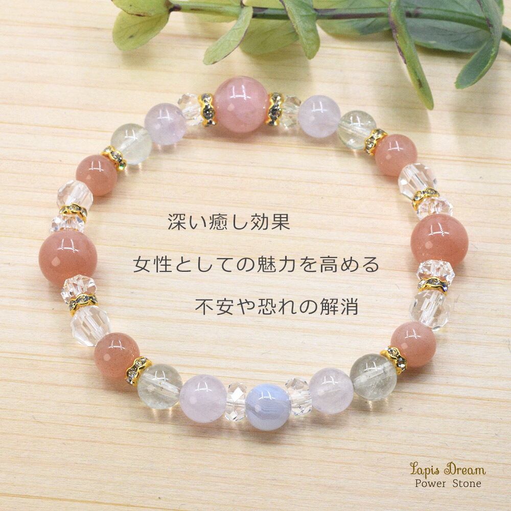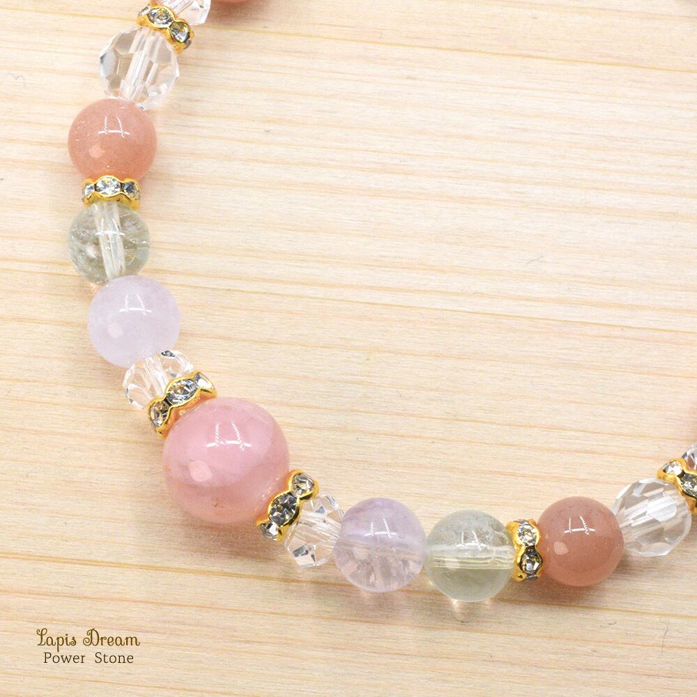 そんな「女性としての魅力を高める」効果がある、オレンジムーンストーンとローズクォーツを中心に制作したパワーストーン ブレスレットです。