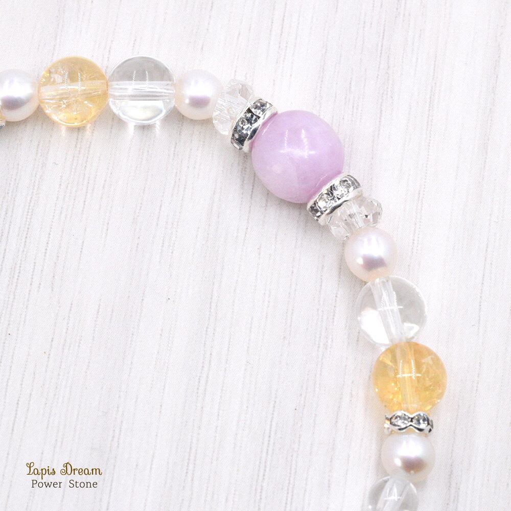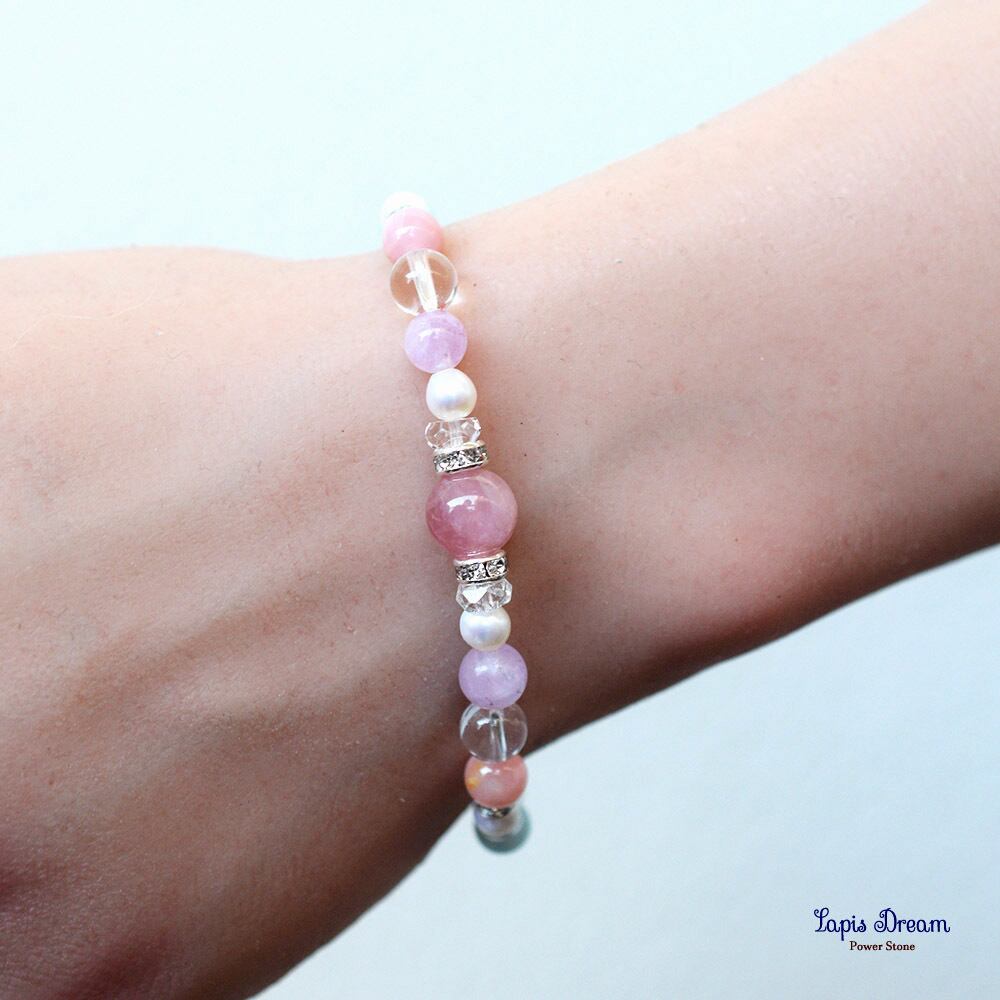 幸福感で満たされるお守り | 極上ローズクォーツ、淡水パールのパワーストーン ブレスレット