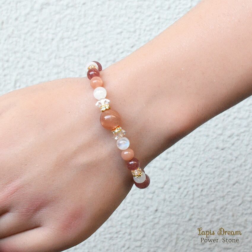 心をやさしく灯す 希望と再生のお守り | オレンジムーンストーン、ピンクエピドートのパワーストーン ブレスレット